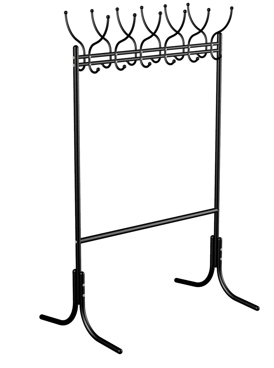 Вешалка расчитана максимально на 16 посетителей: 12 крючков для одежды, столько же для головных уборов