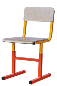 Стул изготовлен из тонкостенного квадратного профиля 25х25х1,5мм (ножки стула) и 20х20х1.5 (спинка-сидушка стула) с экологически чистым полимерно-порошковым покрытием. Сиденье и спинка изготовлены из многослойной шлифовано-лакированной фанеры толщиной 8мм. Концы труб закрыты защитно-декоративными пластиковыми заглушками. Стул регулируется по высоте в трёх положениях сиденья и спинки для групп роста номер 1, 2 и 3 по ГОСТ 19301.2-94.