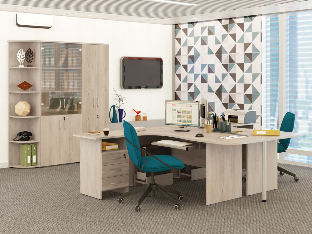 Эргономичный правый стол «Альфа 61.61» является частью модульного набора мебели для офиса «Альфа».