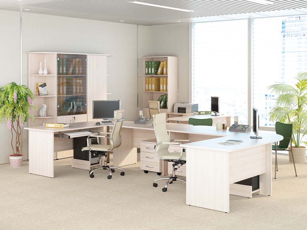 Рабочий стол «Альфа 61.19» является частью модульного набора мебели для офиса «Альфа».