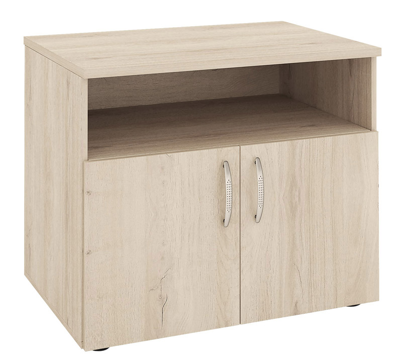 Тумба под оргтехнику «Альфа 61.45» является частью модульного набора мебели для офиса «Альфа». Регулируемые по высоте ножки позволяют при установке скорректировать неровности пола.