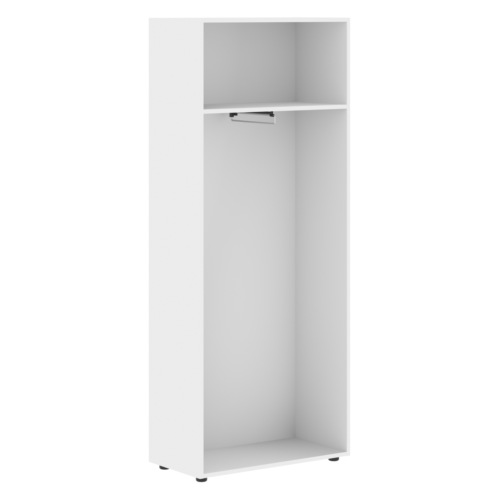 Стеллаж из ЛДСП т.18мм с кромками ABS т.0,45мм, с задней стенкой из ДВП т.3мм в цвет каркаса, комплектуется регулируемыми опорами 50х27 мм черного цвета и одной выдвижной штангой, цвет- хром. Стеллаж комплектуется уголками для крепления к стене