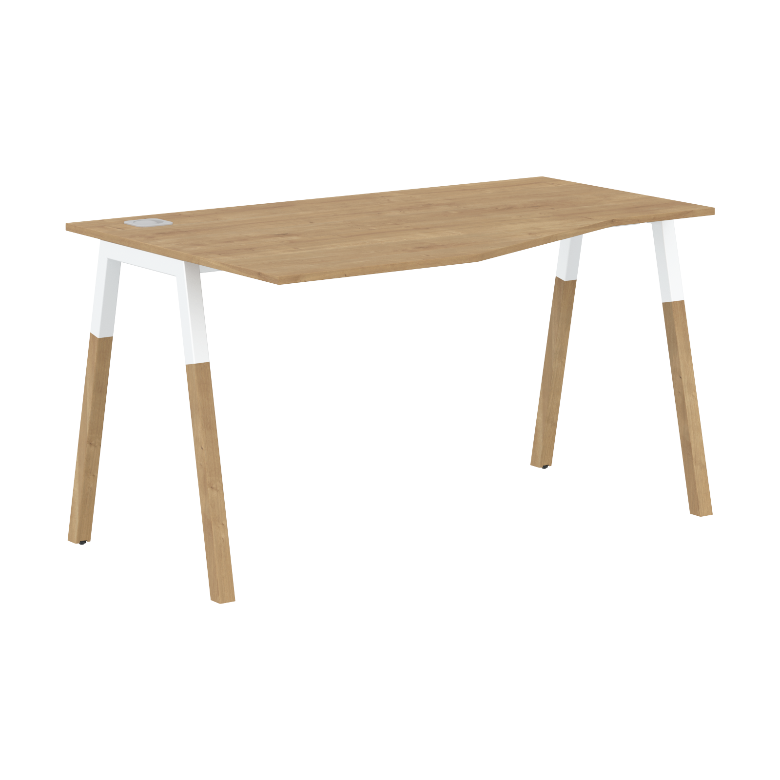 Столешница эргономичная из ЛДСП т.18мм. c кромкой ABS т.2.мм, комплектуется квадратной заглушкой кабель-канала слева или справа, 2-мя траверсами и комбинированными опорами А-образной формы, верхняя часть из профиля трубы 40х40мм и нижняя часть из массива бука; отделка – масло-воск. Опоры имеют регулировку внизу.