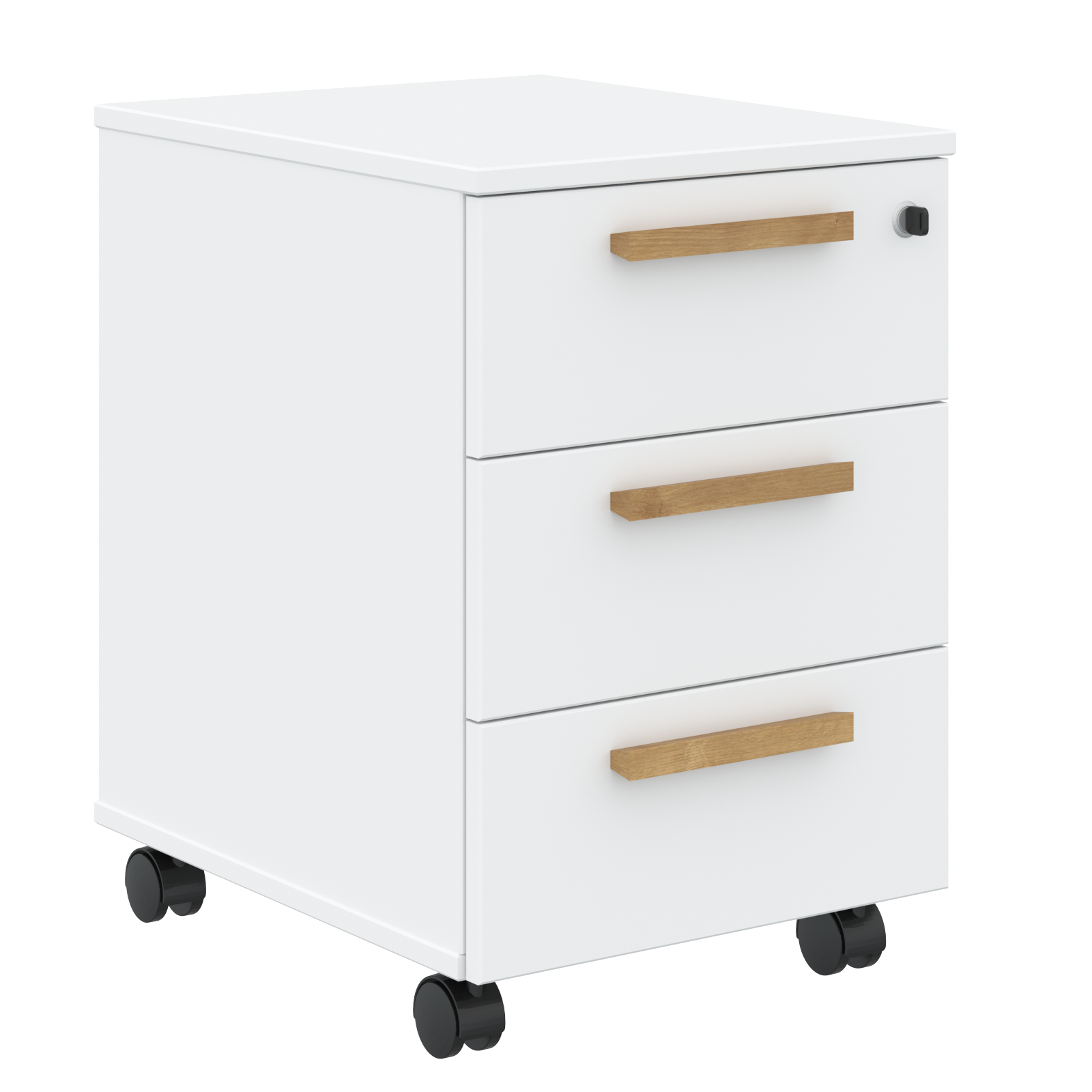 Тумба полностью из ЛДСП т.18мм, кромки ABS т.2 и 0,45мм, комплектуется центральным замком, колесными опорами - 2 со стопором и 2 б/стопора. Ящик - фолдинг и дно белого цвета. Ручка накладная, расположение горизонтальное, материал - массив бука, отделка – масло-воск. Тумба полностью в цвете Белый премиум, Черный графит
