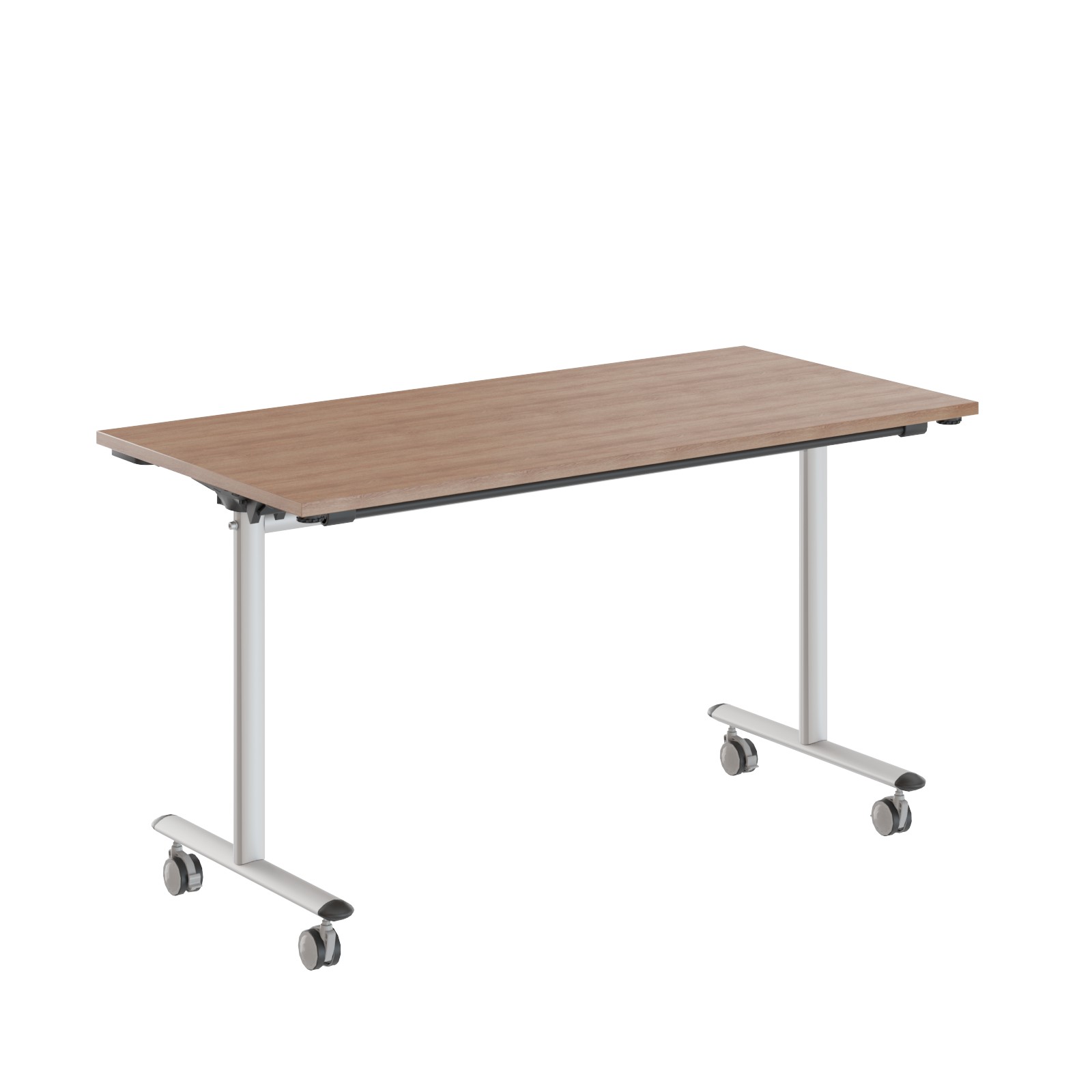 Столешница из ЛДСП т.22мм с кромкой ПВХ т. 2мм по периметру, без кабель-каналов. Металлокаркас из двух Т-образных опор на колесах со стоппером. Механизм трансформации/складывания изготовлен из стеклонаполненного полиамида с металлическими пружинами.