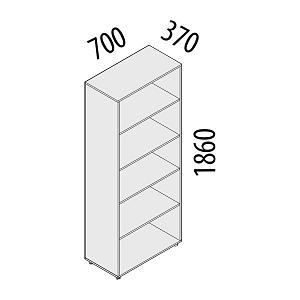 Шкаф является частью модульного набора мебели для офиса «Рубин». Модуль разделён полками на пять секций. Регулируемые по высоте ножки позволяют при установке скорректировать неровности пола.