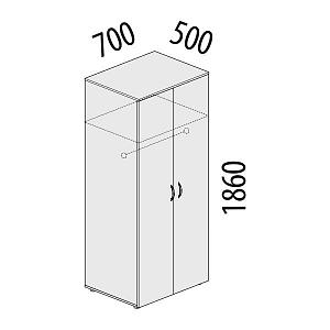 Гардероб двухдверный является частью модульного набора мебели для офиса «Рубин». Регулируемые по высоте ножки позволяют при установке скорректировать неровности пола.