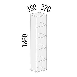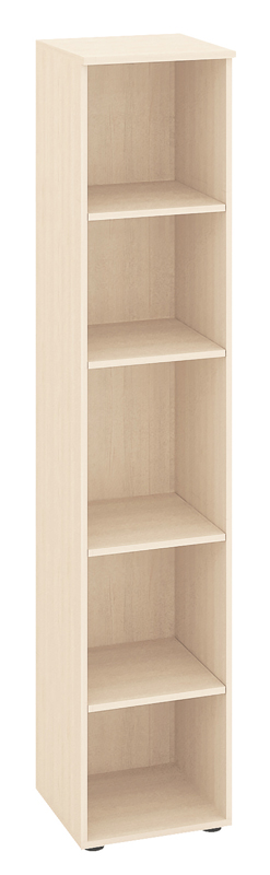 Шкаф является частью модульного набора мебели для офиса «Рубин». Модуль разделён полками на пять секций. Регулируемые по высоте ножки позволяют при установке компенсировать возможные неровности пола.