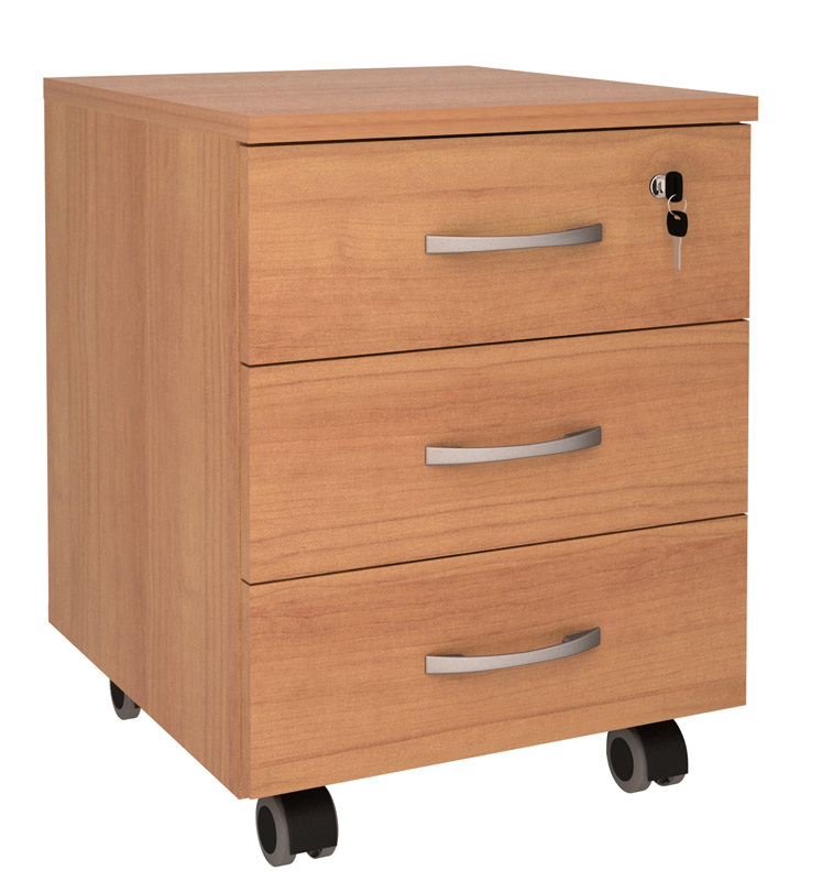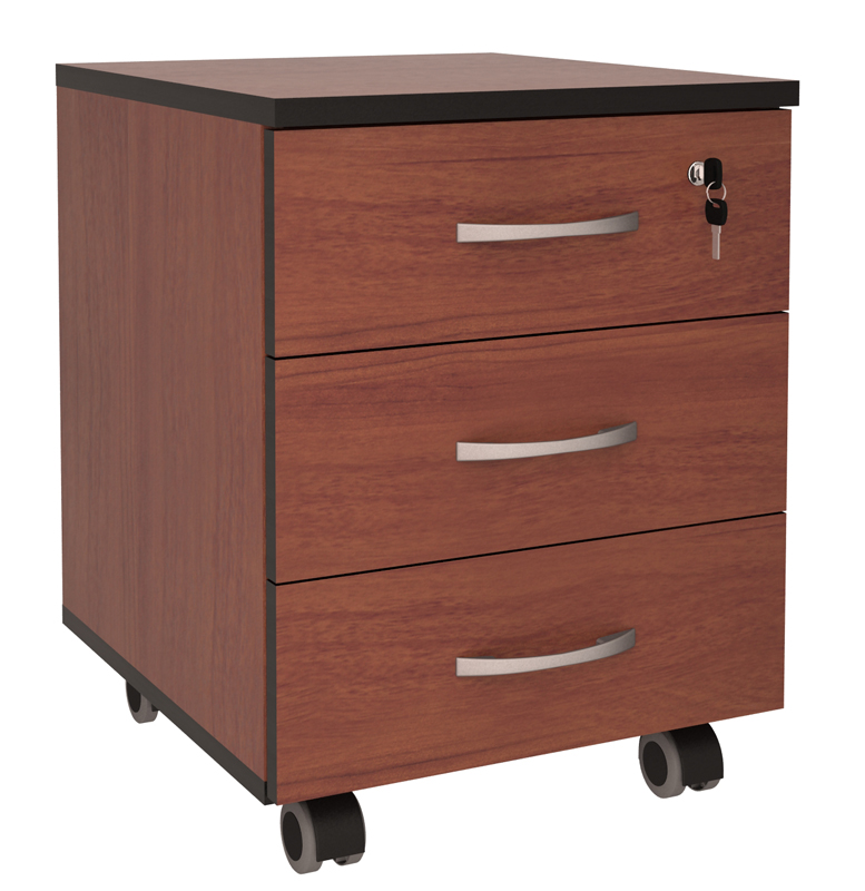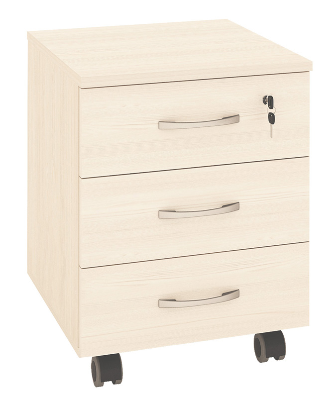 Тумба с тремя ящиками является частью модульного набора мебели для офиса «Рубин». Верхний ящик имеет встроенный замок. В комплекте к замку тумбы прилагаются два ключа.
