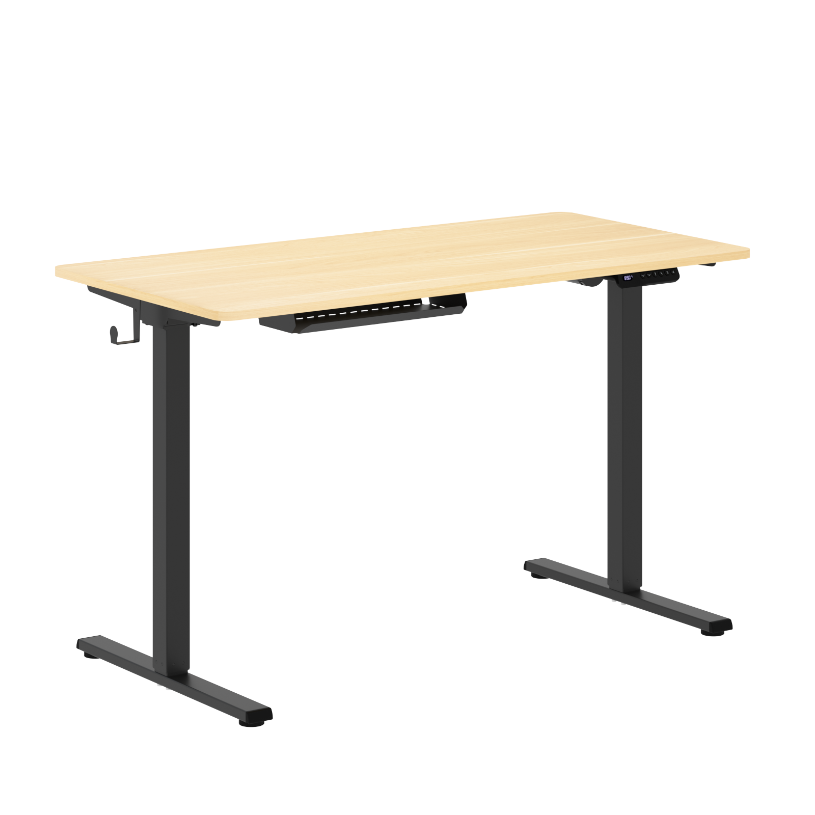 Столешница из ЛДСП т.16мм, кромка ПВХ т.2мм. Металлокаркас из профиля трубы, в основании 50х20х2мм, телескопические опоры 45х45х1,5мм и 50х50х1,5мм. Основание подстолья толщиной 2,5мм с траверсой толщиной 1,5мм. Стол комплектуется 2-мя метллическими крючками с толщиной металла 1,5мм и подвесным кабель-каналом. Металлокаркас комплектуется одним мотор-подъемом и пультом управления для регулировки высоты стола.