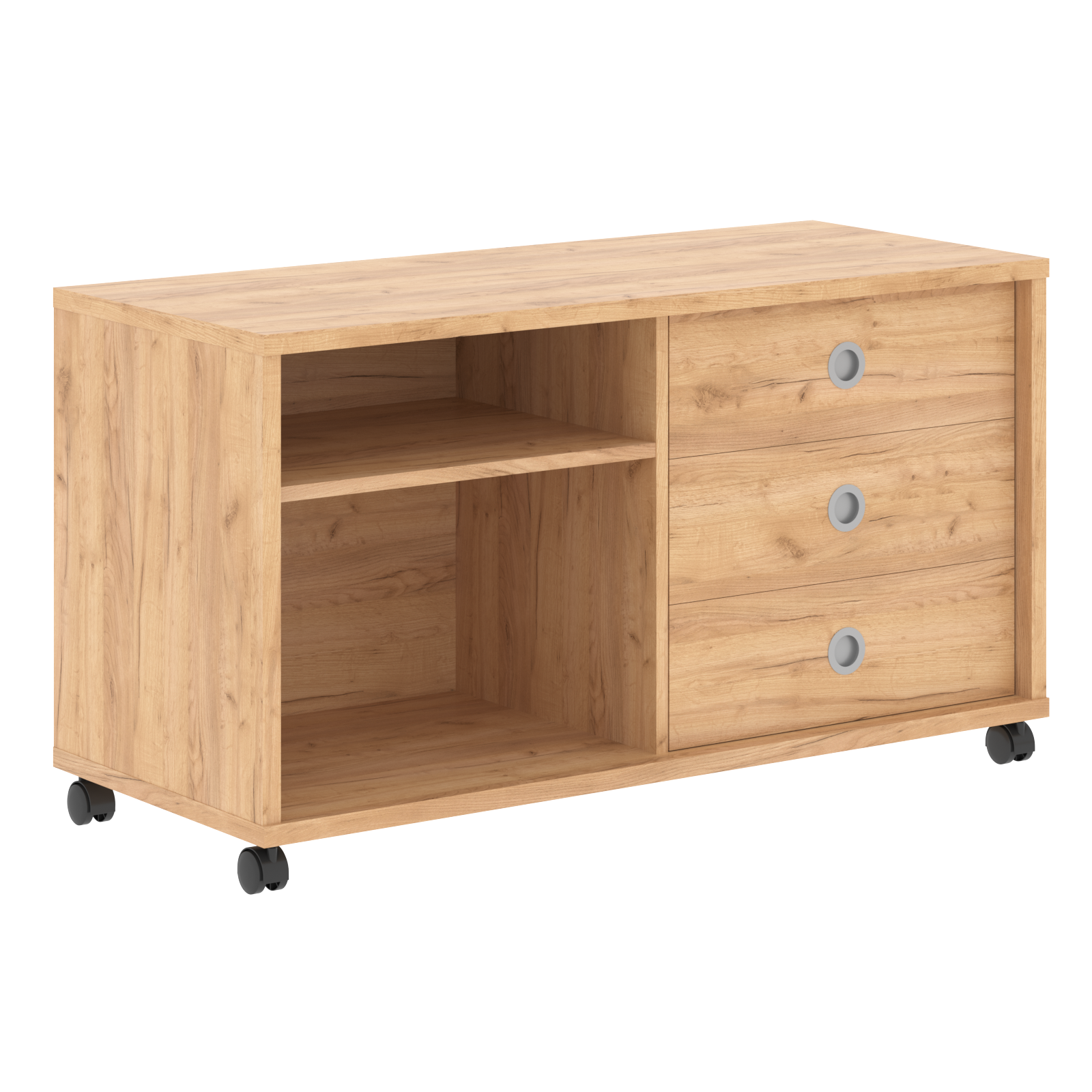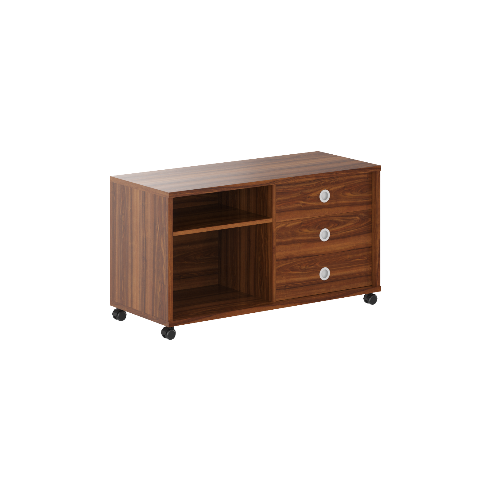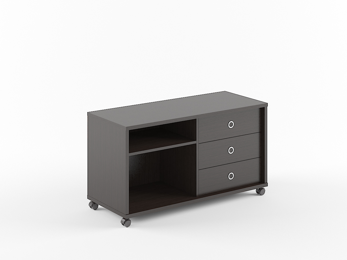 Каркас из ЛДСП т.25 мм, полки и задняя стенка из ЛДСП т.18мм. Тумба мобильная комплектуется, по желанию, слайд-дверями В-550 или В-552. Ручка врезная, цвет алюминий. Ящики-фолдинги размером 400х539х400, можно устанавливать и слева и справа. Роликовые направляющие.