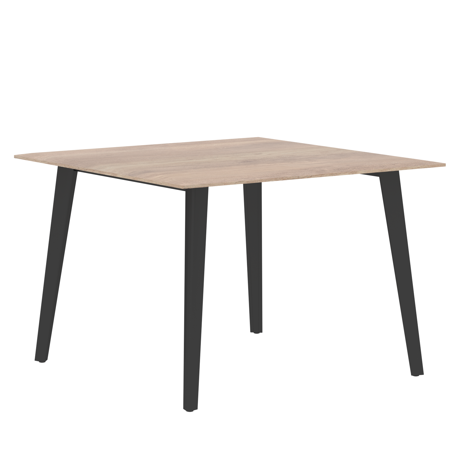 Столешница из одностороннего МДФ т. 19мм в пленке ПВХ с фрезеровкой по периметру, цвет - Дуб Каньон. Комплектуется металлическими опорами треугольно-конической формы и траверсами рамочного соединения, цвет опор - Антрацит.