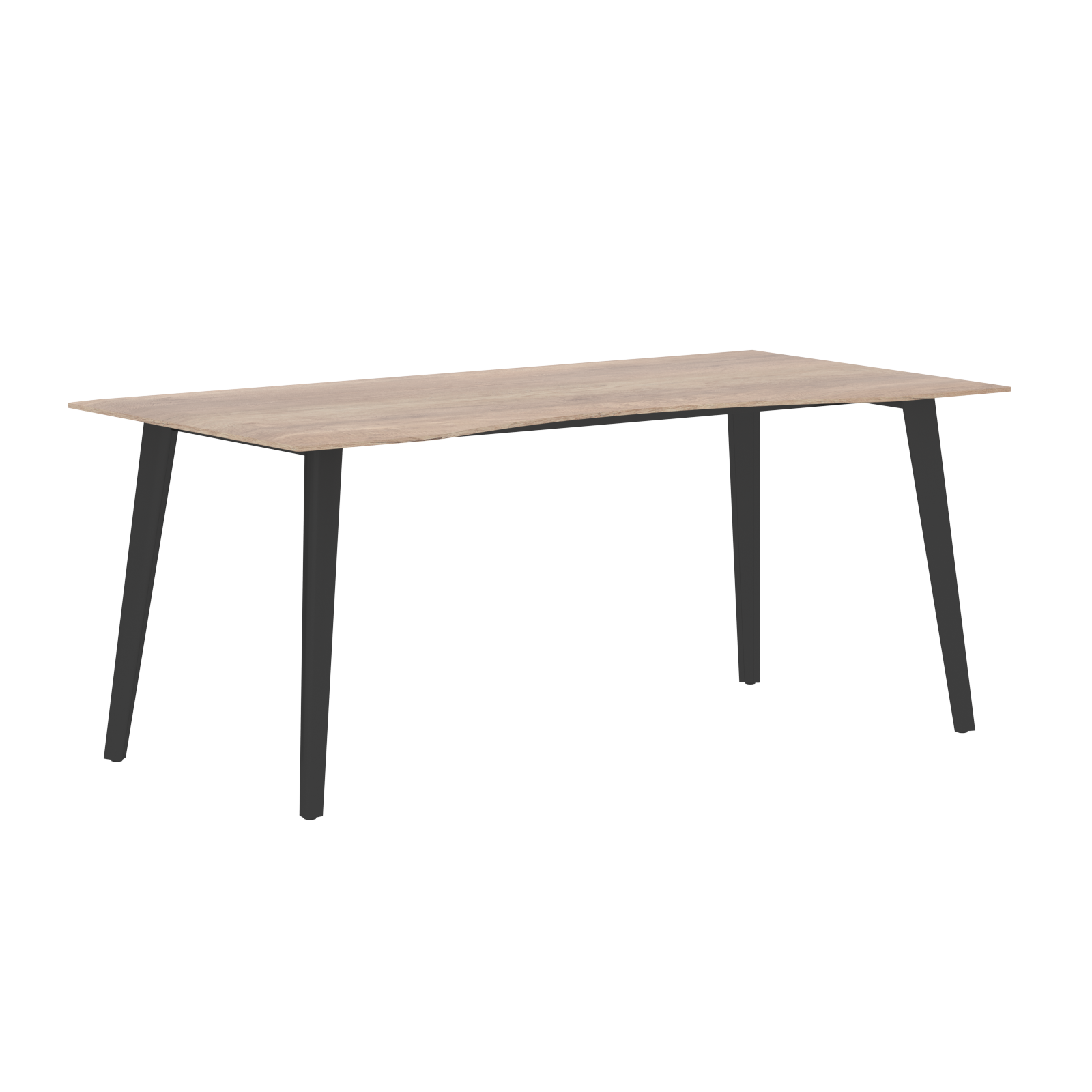 Столешница эргономичная из одностороннего МДФ т. 19мм в пленке ПВХ с фрезеровкой по периметру, цвет - Дуб Каньон. Комплектуется металлическими опорами треугольно-конической формы и траверсами рамочного соединения, цвет опор - Антрацит.