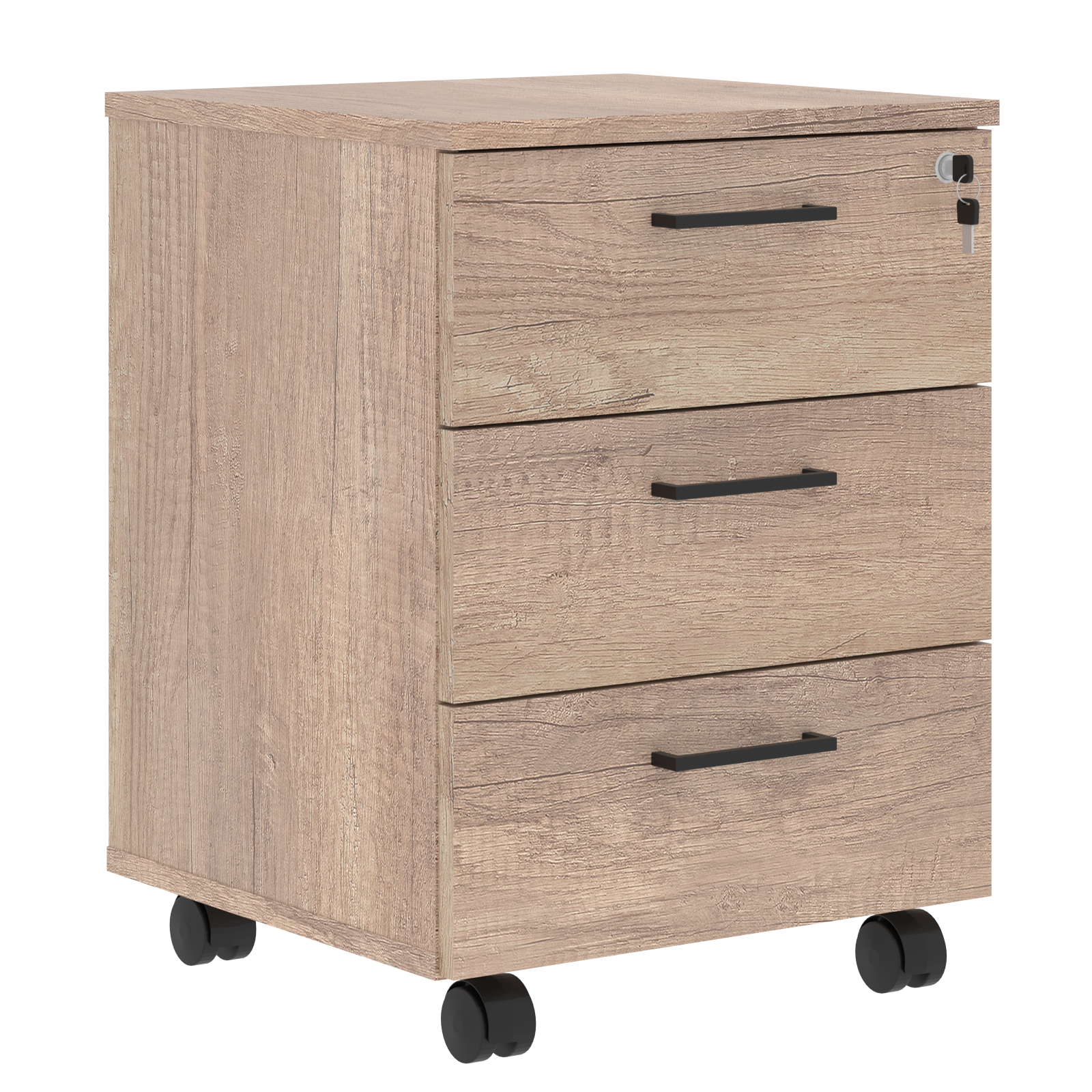Тумба мобильная из ЛДСП т. 18мм, цвет - Дуб Каньон. Ящики-фолдинги разборные, размер 400х399х100. Комплектуется центральным замком.