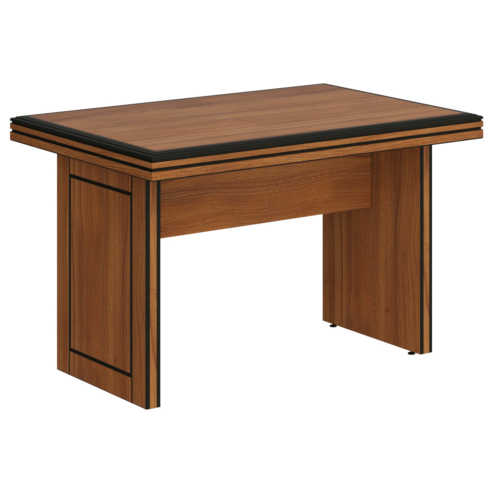 Столешница из МДФ т.16 мм, по периметру профиль из МДФ т. 16 мм и шириной 60 мм, общая толщина 76 мм, декорирована методом глубокого фрезерования, финишная отделка лаком. Боковины трехслойные из МДФ и ЛДСП толщиной 50 мм, декорированы методом глубокого фрезерования, финишная отделка лаком. Фронтальная панель из ЛДСП т. 16 мм, видимые торцы облицованы кромкой ПВХ 0,4 мм.