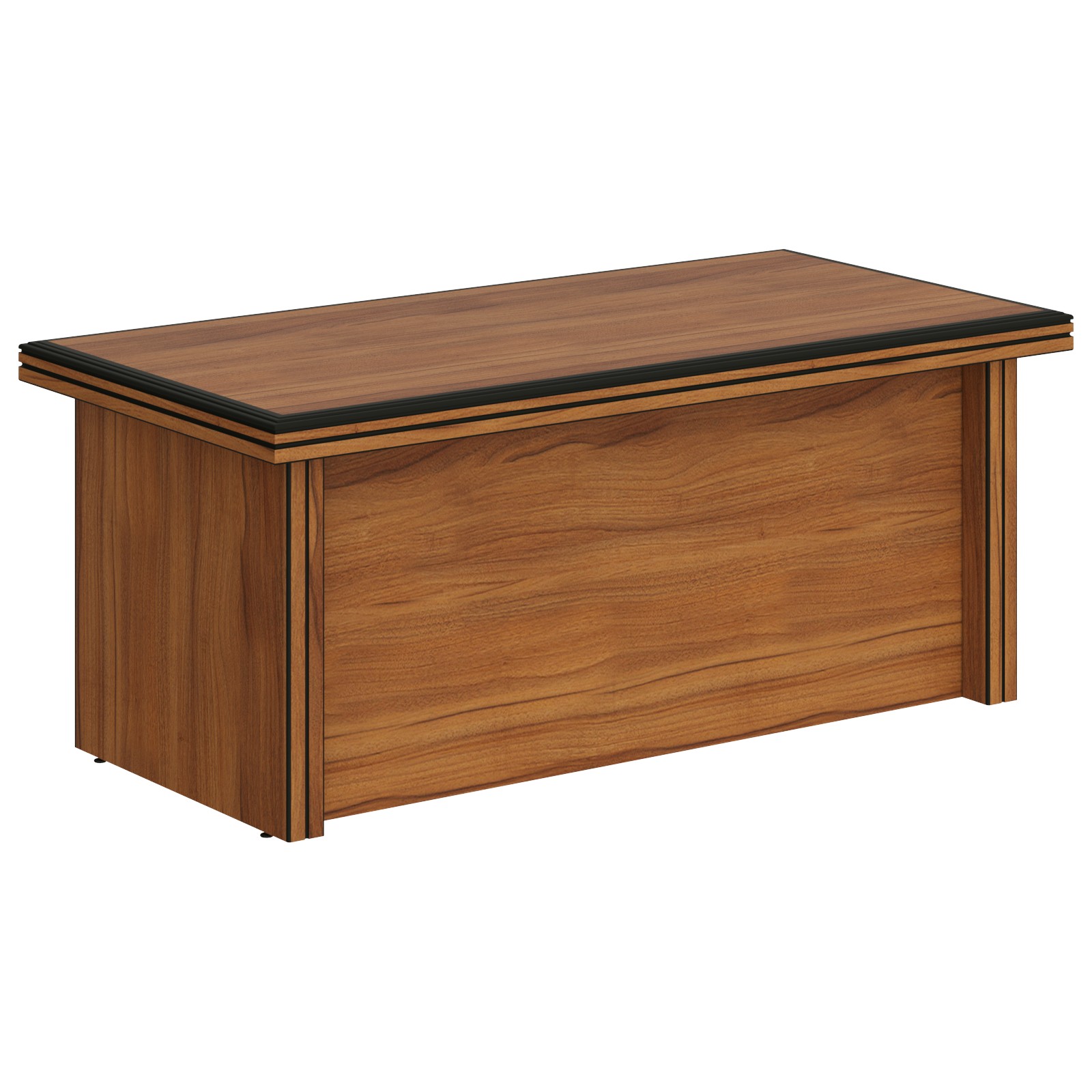 Столешница из МДФ т.16 мм, по периметру профиль из МДФ т.16 мм и шириной 60 мм, общая толщина столешницы 76 мм, декорирована методом глубокого фрезерования, финишная отделка лаком. Опоры из МДФ и ЛДСП общей толщиной 75мм, МДФ декорированы методом глубокого фрезерования, финишная отделка лаком. Фронтальная панель из ЛДСП т.16 мм., видимые торцы облицованы кромкой ПВХ 0,4 мм.