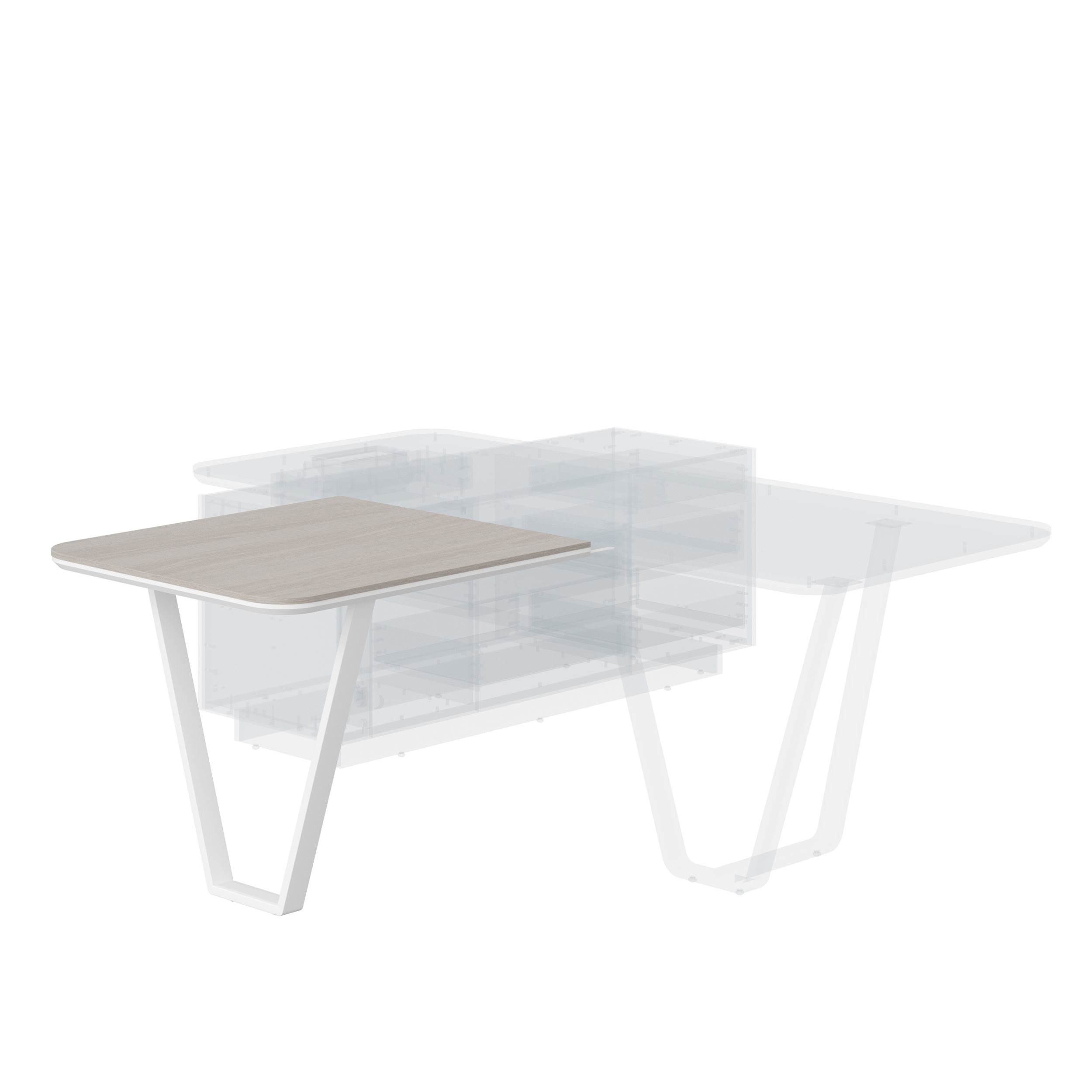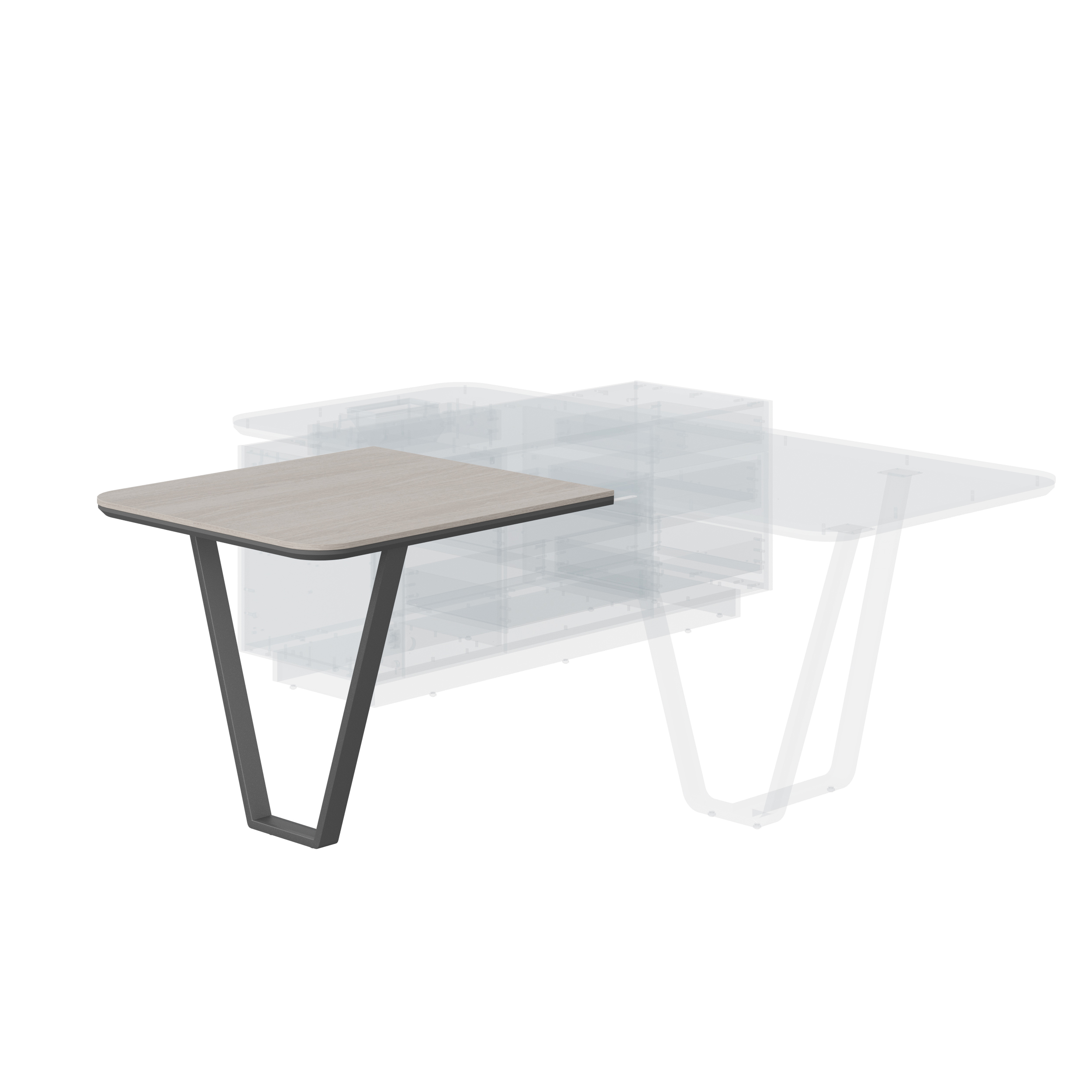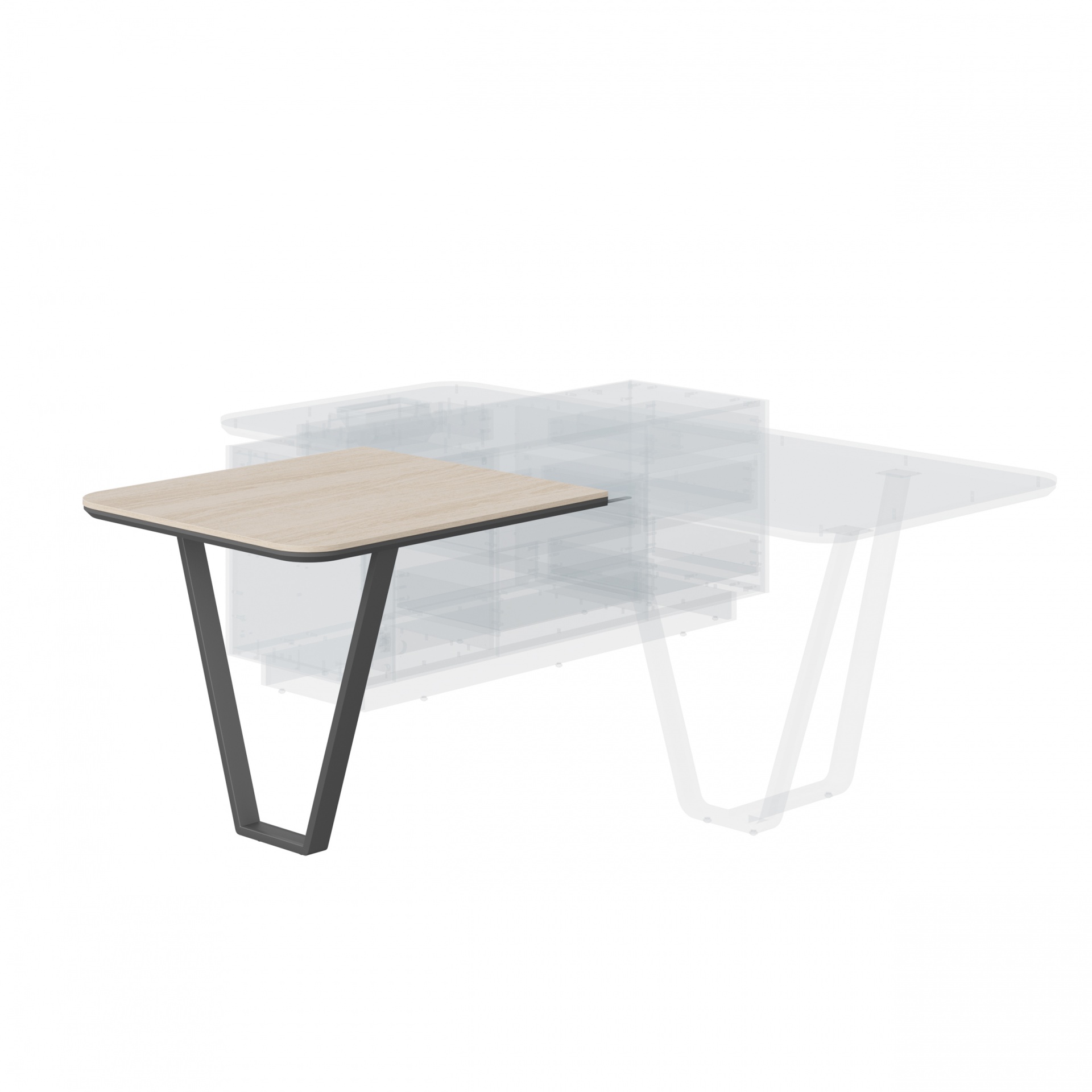 Брифинг установлен на металлическую опору. Металлическая опора имеет изгибы с внешним радиусом 20 мм и угловым сварным соединением с внутренней стороны. Опоры с регулировкой по высоте: 0 - 12 мм. Опора покрыта полимерной порошковой краской с эффектом «муар». Брифинг крепится к рабочему столу снизу на шурупах при помощи 3-х стальных соединительных пластин-накладок.