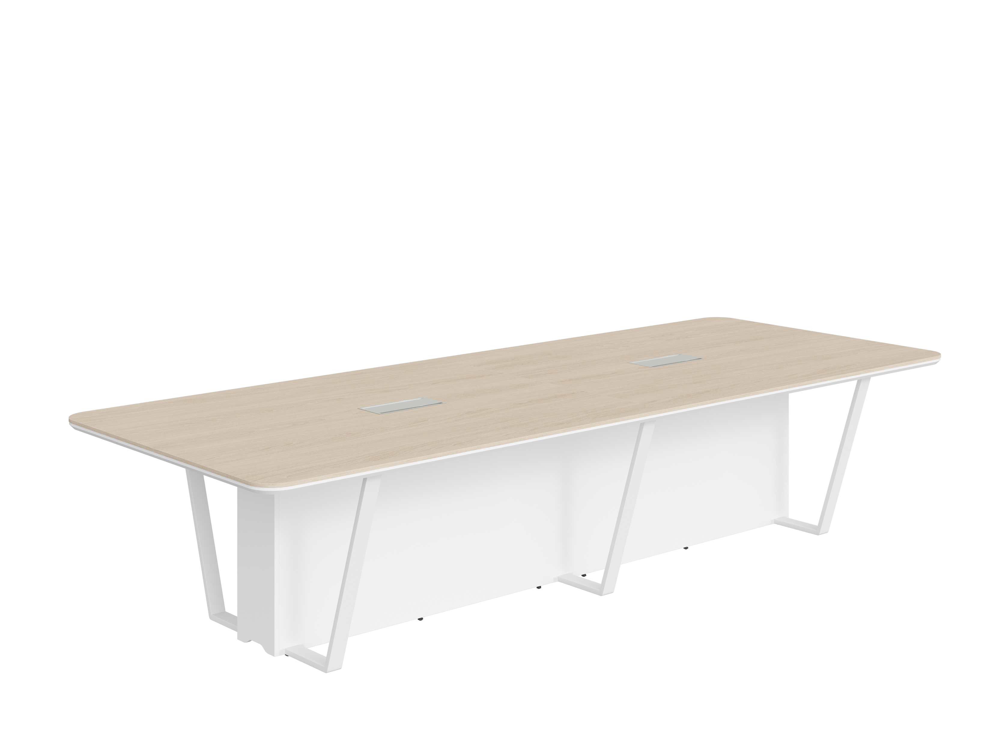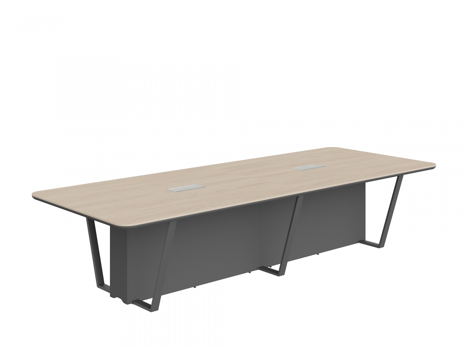 Крепление боковых стенок к каркасу опорного короба быстросъемное при помощи системы крепления Keku. Столы для переговоров оснащены встраиваемым в центральную часть столешницы блоком розеток Asa Plastici со сдвижной в двух направлениях крышкой и серыми щеточками. В блоке находятся три сетевые розетки, USB и сетевые порты. Количество блоков в столах для переговоров: В столе размером 2200х1340х754 мм предусмотрен врезной блок в количестве 1шт., в столе размером 3460х1340х754 мм – в количестве 2 шт.