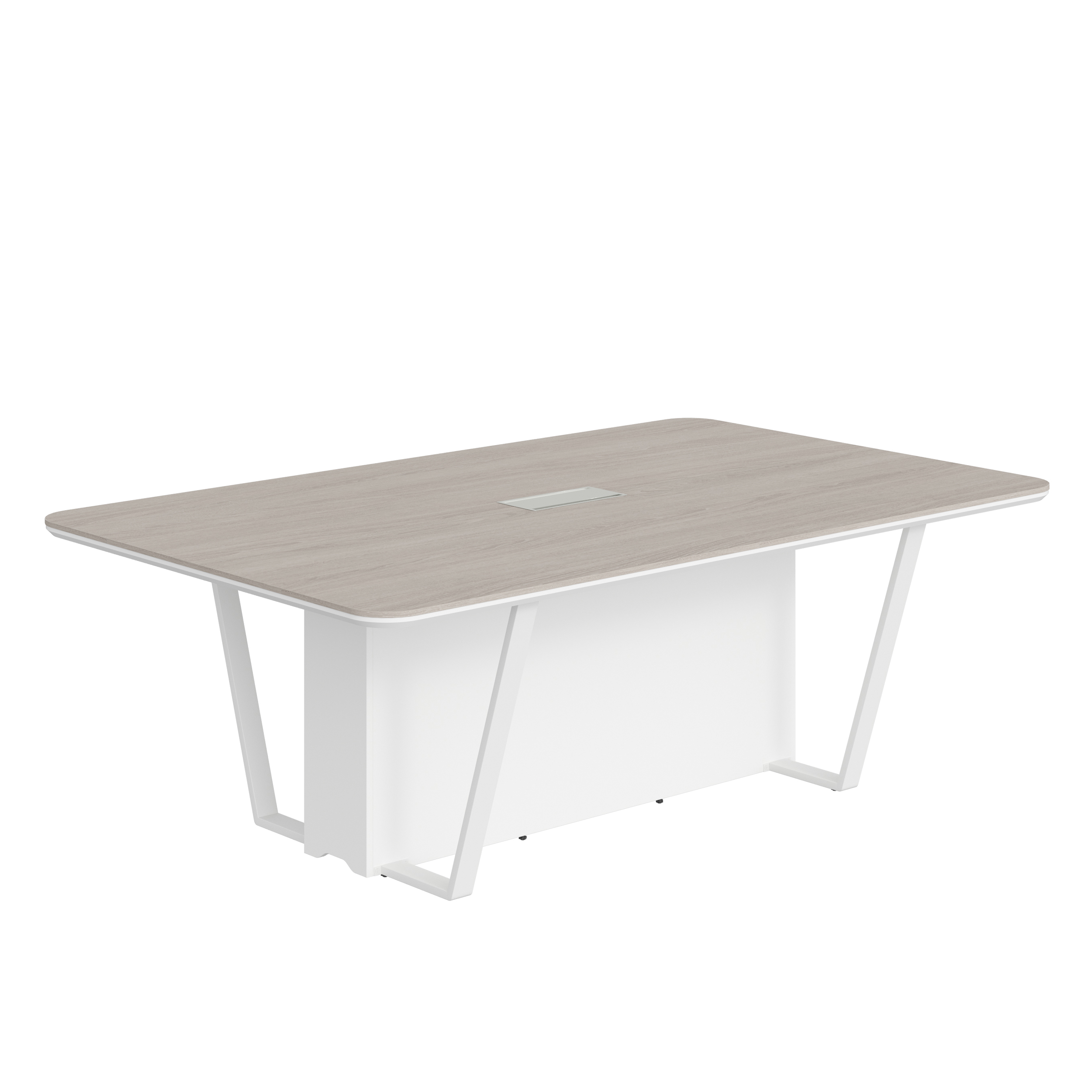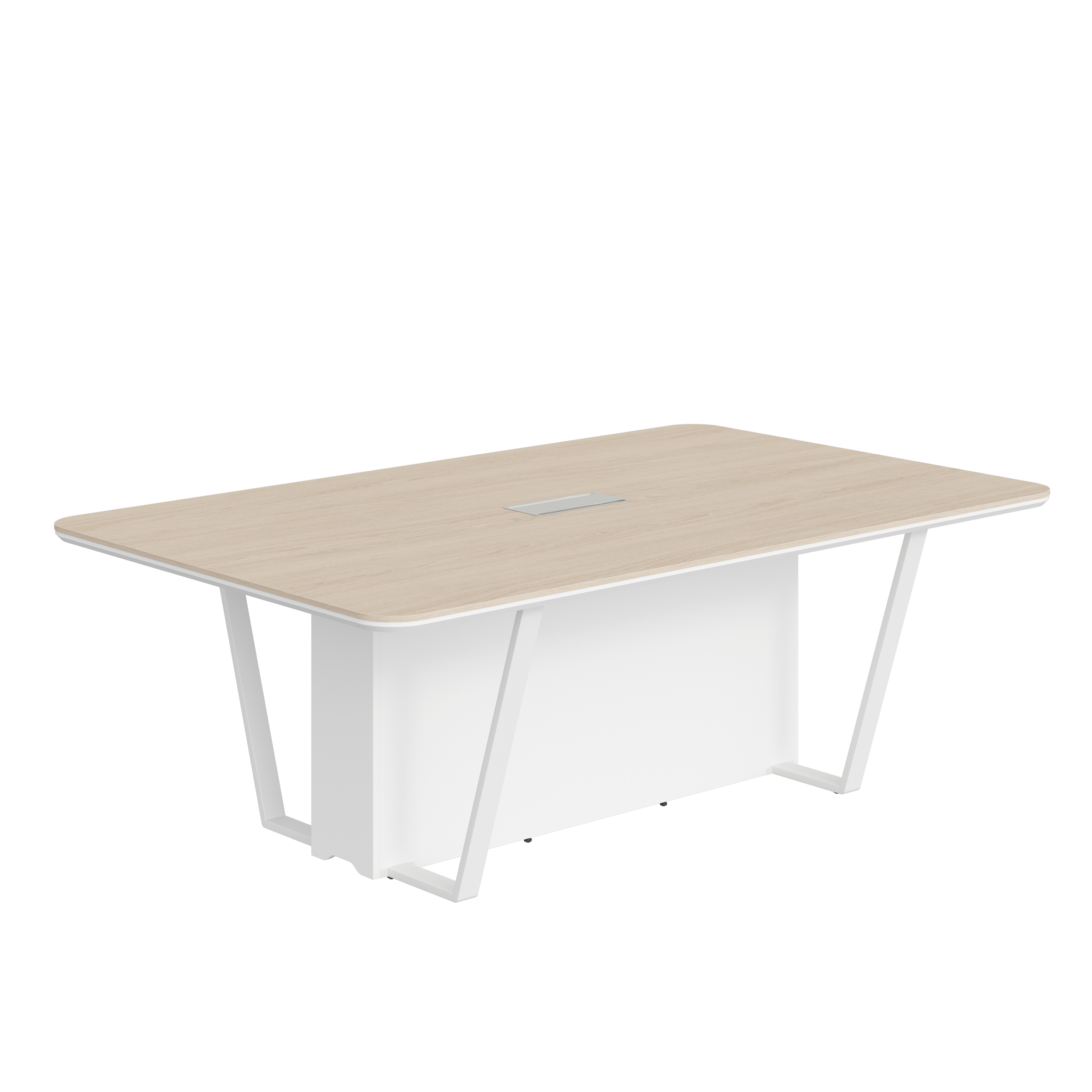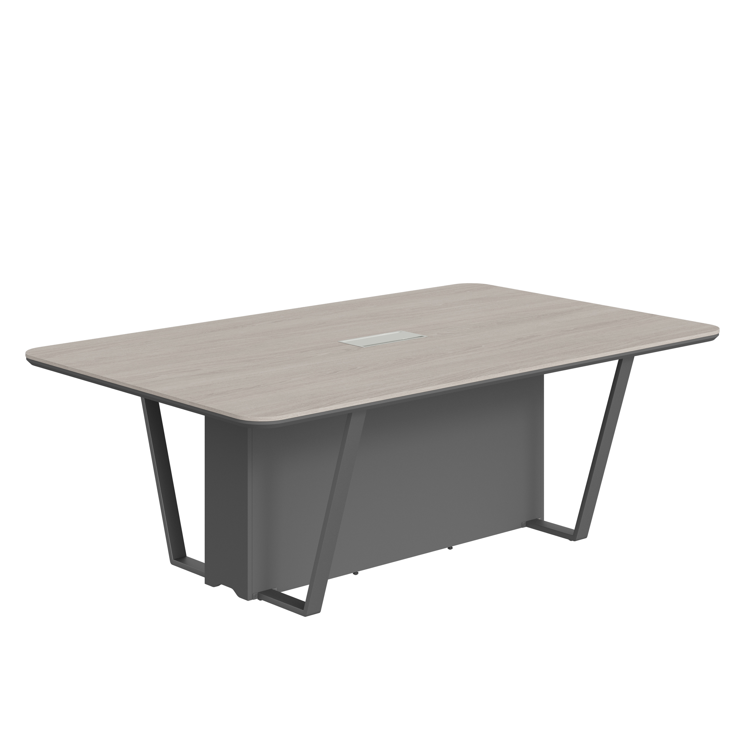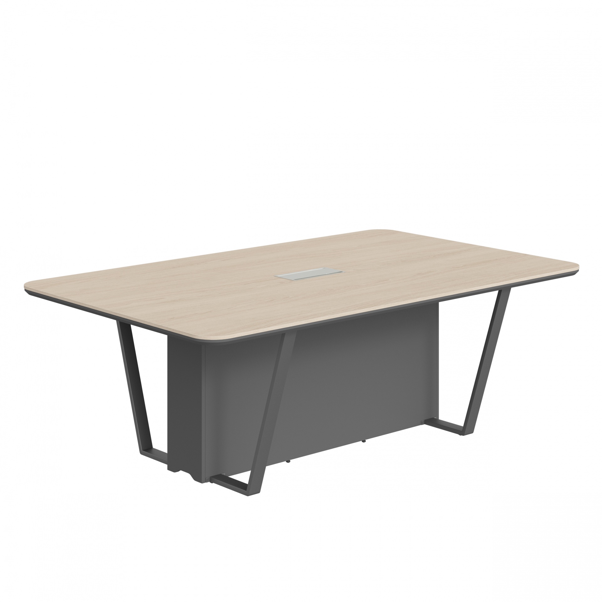 Крепление боковых стенок к каркасу опорного короба быстросъемное при помощи системы крепления Keku. Столы для переговоров оснащены встраиваемым в центральную часть столешницы блоком розеток Asa Plastici со сдвижной в двух направлениях крышкой и серыми щеточками. В блоке находятся три сетевые розетки, USB и сетевые порты. Количество блоков в столах для переговоров: В столе размером 2200х1340х754 мм предусмотрен врезной блок в количестве 1шт., в столе размером 3460х1340х754 мм – в количестве 2 шт.