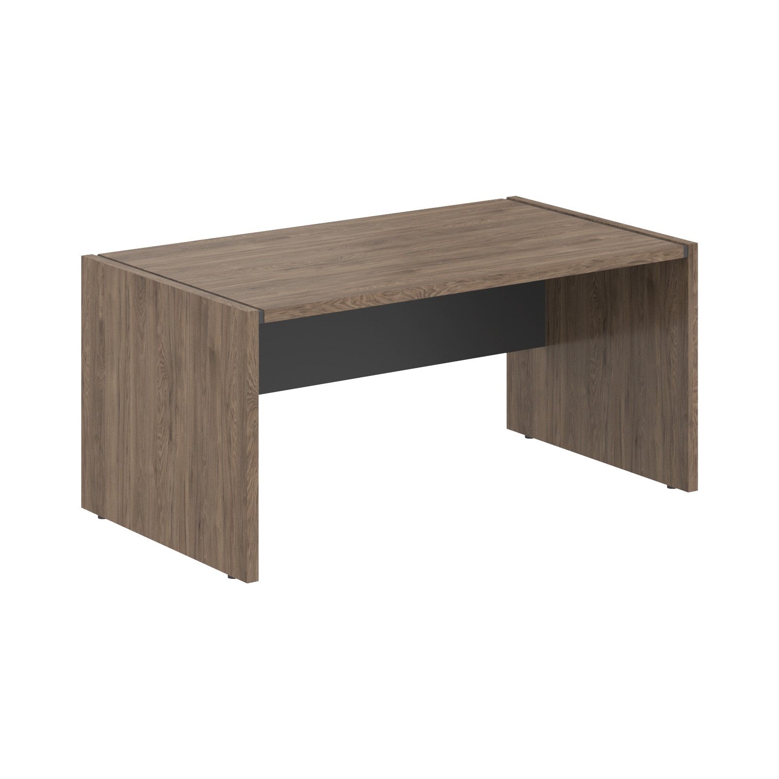 Столешница, опоры из ЛДСП т.36мм. с кромкой ПВХ т.2мм в цвете Кария Пальмира, матовая поверхность. Проставка между опорой и столешницей в цвете Антрацит. Фронтальная панель в цвете Антрацит высотой 400мм.