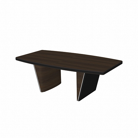 Конференц-стол New.Tone NT-220 выполнен из шпонированного МДФ. Торцы столешницы с эмалевым покрытием декорированы вставками из экокожи. Опоры со съемными панелями, обтянутыми экокожей, декорированы хромированным молдингом.