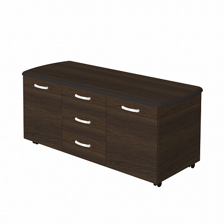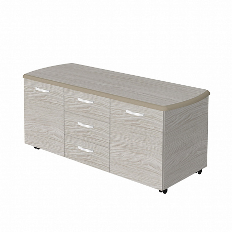 Мобильная сервисная тумба New.Tone NT-32 выполнена из шпонированного МДФ с эмалевым покрытием торцов и из ЛДСП, ручки — из хромированного металла.