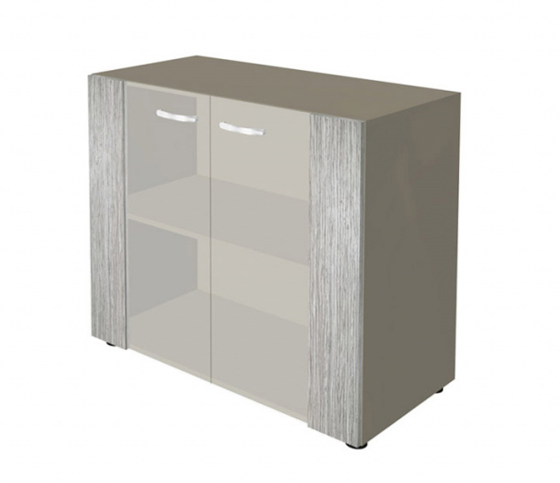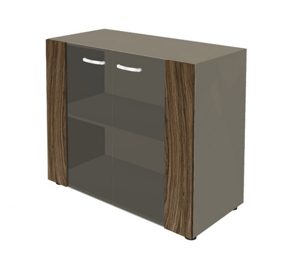Шкаф низкий со стеклянными фасадами New.Tone NT-41 выполнен из шпонированного МДФ и из ЛДСП, ручки — из хромированного металла. Внутри стационарная полка на усиленных стяжках. Двери оснащены встроенными механизмами плавного закрывания; изготавливаются в таких цветовых решениях: