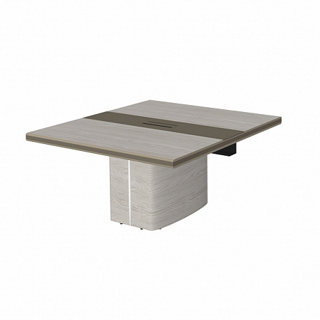 Расширитель модульного конференц-стола New.Tone NT-280.1 выполнен из шпонированного МДФ. Торцы столешницы с эмалевым покрытием декорированы вставками из экокожи. Опоры со съемными панелями, обтянутыми экокожей, декорированы хромированным молдингом.