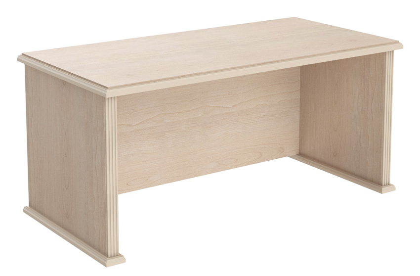 Столешница выполнена из ЛДСП с крашенным рамочным фрезерованным профилем из МДФ, опоры ЛДСП с крашенным рамочным фрезерованным профилем из МДФ. Фронтальная панель с крашенной раскладкой из МДФ.