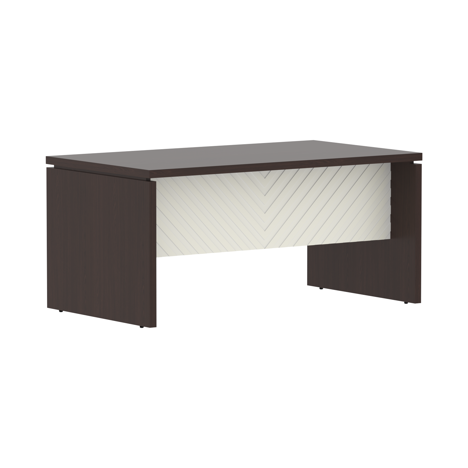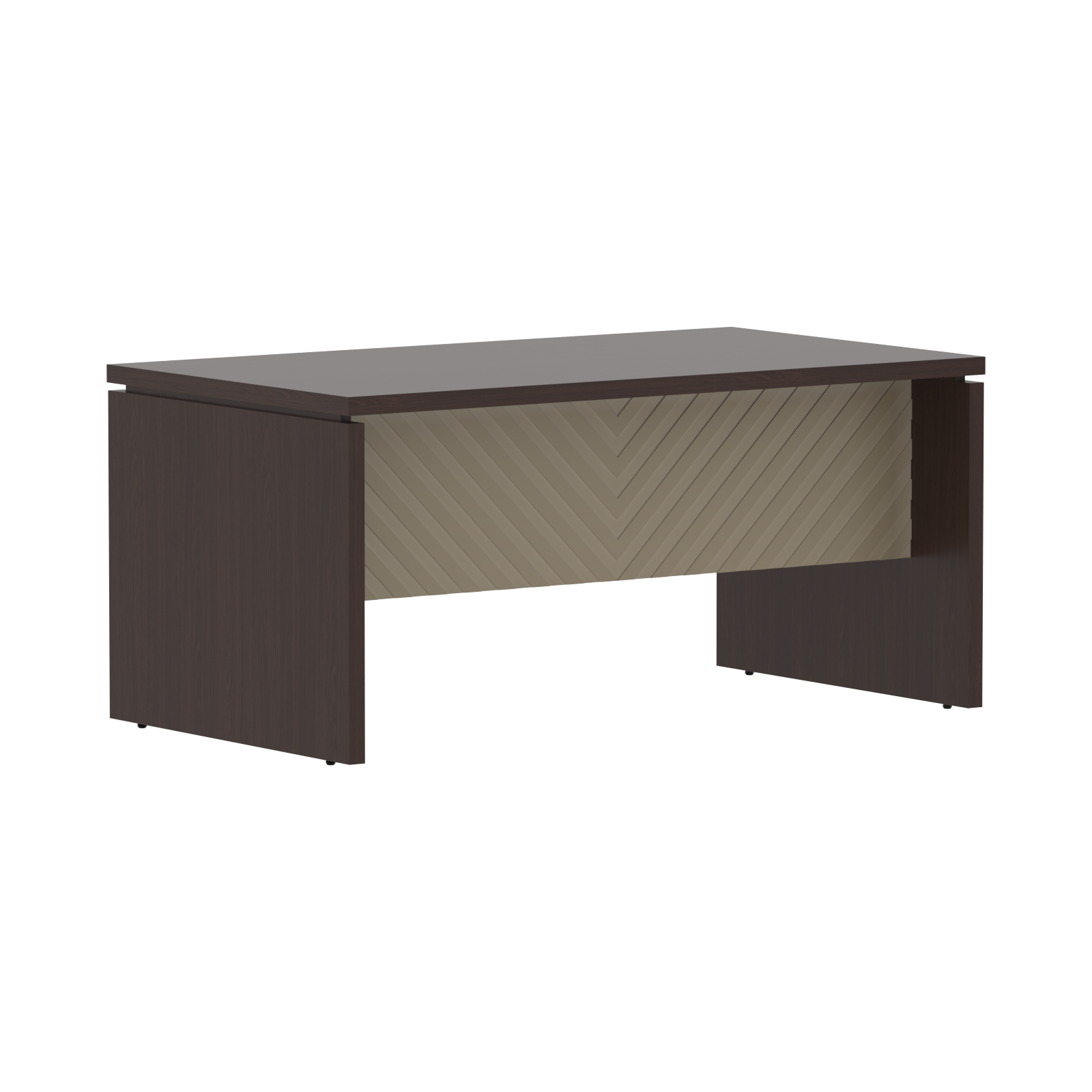 Столешница и опоры из ЛДСП толщиной 38мм с кромкой ПВХ т.2мм в цвет ЛДСП. Стол комплектуется регулируемыми опорами. Фронтальная панель из одностороннего МДФ т.19мм фрезерованного крашенного матовой эмалью, высотой h=400мм.