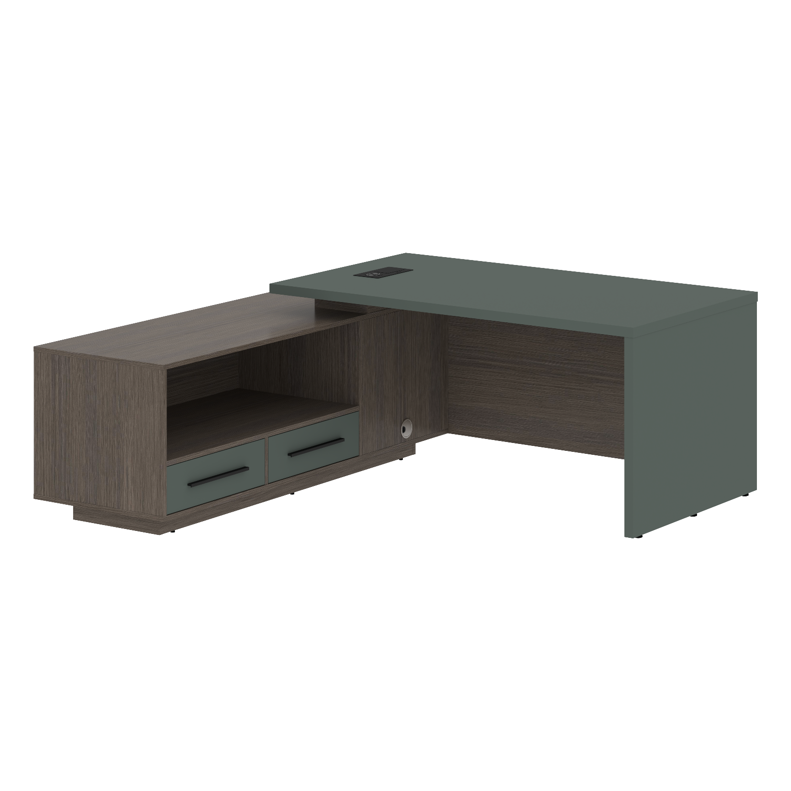 Столешница, опора выполнены из МДФ т.36мм с покрытием пленкой PET(ПЭТ), с кромками ПВХ т.2мм. Опорная тумба габаритом 1779х600х546, каркас из ЛДСП т.18мм, видимые кромки ПВХ т.1мм, фасады ящиков вкладные из МДФ т.18мм в пленке PET(ПЭТ), комплектуются ручкой с межцентровым расстоянием 320мм. Ящики-фолдинги разборные 400х560х400мм, направляющие - шариковые с доводчиком. Фронтальная панель стола и каркаса тумбы общая, h=548мм. Для увеличения жесткости стола под столешницей установлена металлическая траверса. В столешнице встраиваемый розеточный блок AE-PB1SAVAP-20, цвет - черный, 2 порта USB A+C, индукционная зарядка 5W с проводом 1,5 метра.