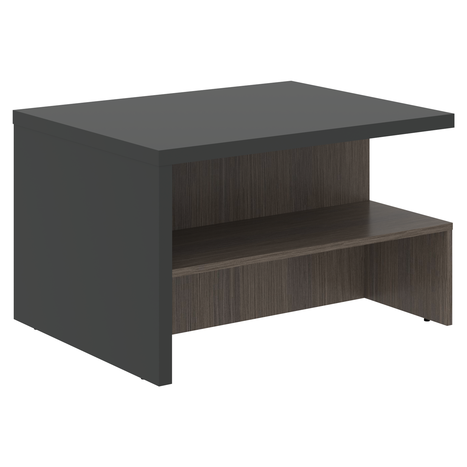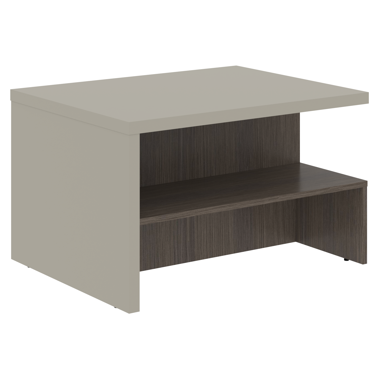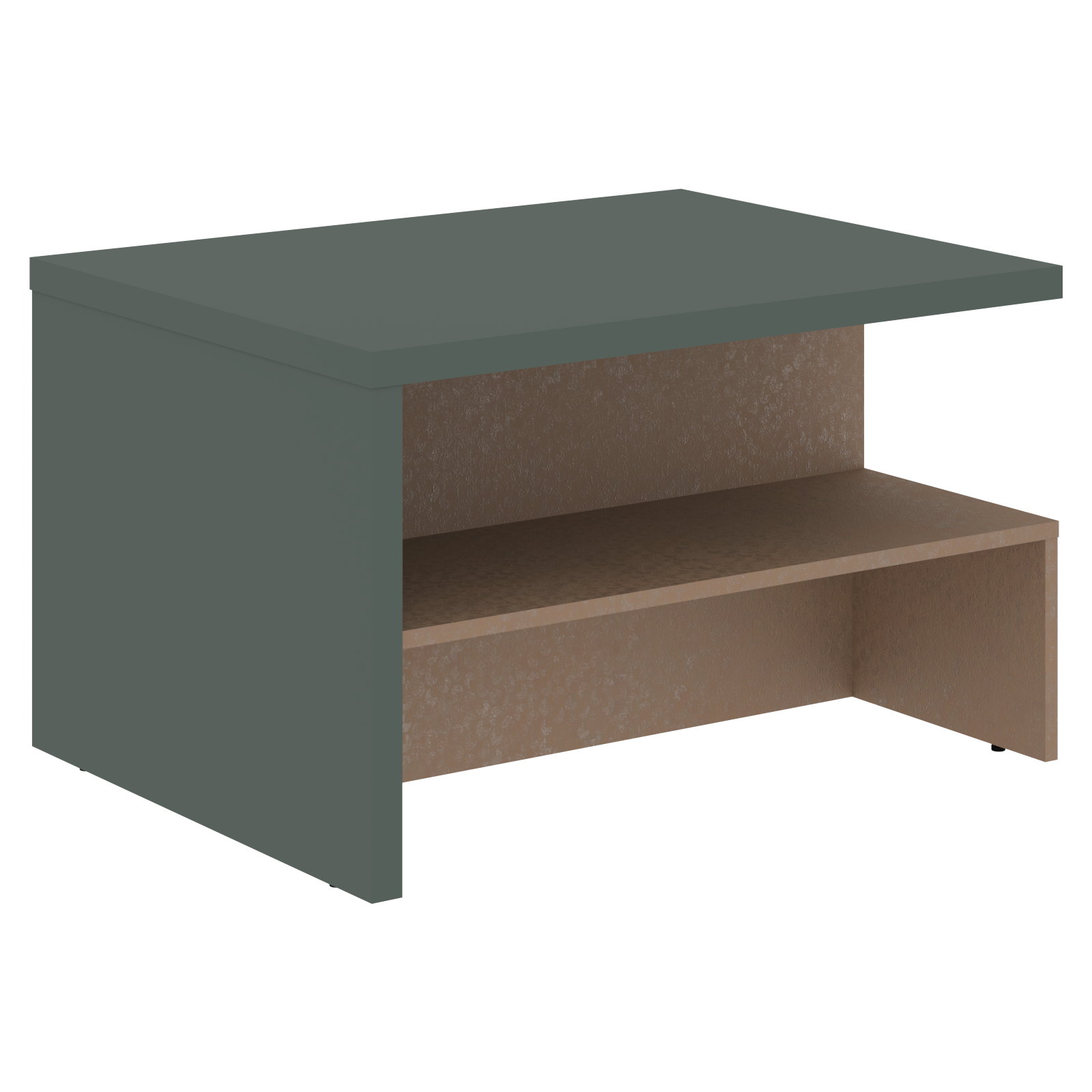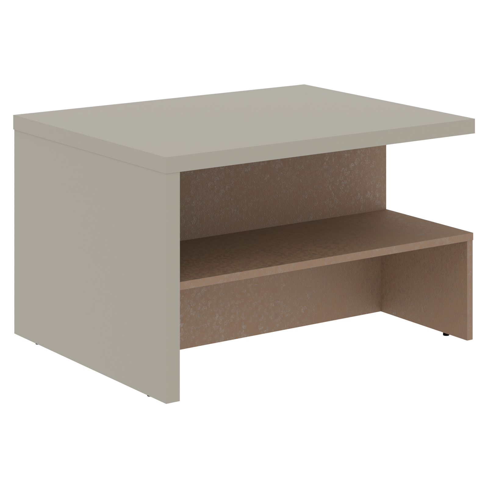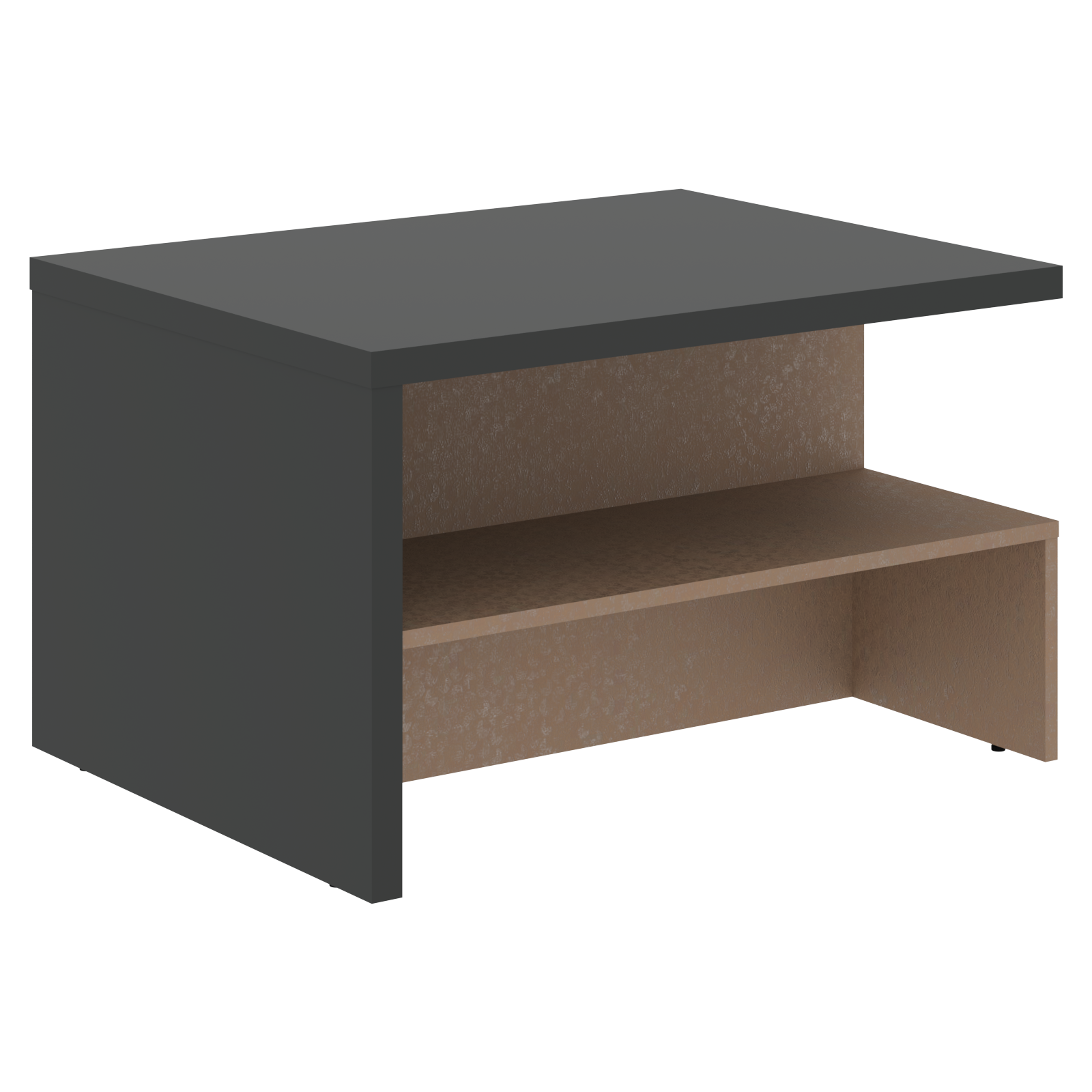 Столешница и опора выполнены из МДФ т.36мм с покрытием пленкой PET(ПЭТ) с кромками ПВХ т.2мм по периметру, нижнее основание выполнено из ЛДСП т.18мм с кромками ПВХ т.2мм.