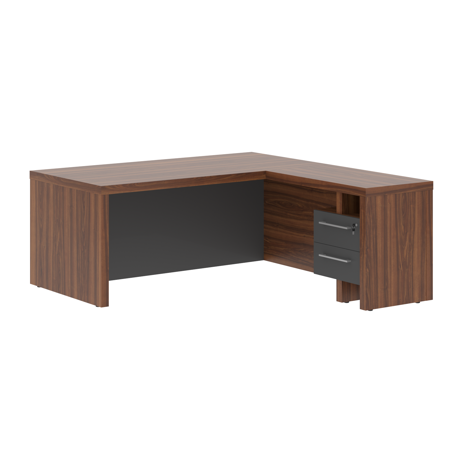 Стол с тумбой приставной. Столешница и опоры из ЛДСП т.54 мм, кромка ПВХ. Фронтальная панель до пола H=600 мм. Стол комплектуется регулируемыми опорами и тумбой приставной, каркас тумбы из ЛДСП т.18 мм, ящики-фолдинги, центральный замок. Столешница и задняя панель тумбы приставной из ЛДСП т.54мм с кромками ПВХ т.1мм. Расположение тумбы универсальное.