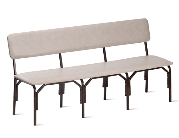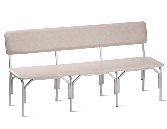 Металлокаркас изготовлен из стального квадратного профиля 20х20х1,2 мм и состоит из основания и трёх секций ножек, крепящихся с помощью гильз межсекционной стяжки и винтов М6. Металлокаркас окрашен защитным полимерно-порошковым покрытием. Сиденье и спинка изготовлены из ДСП толщиной 16 мм и обтянуты поролоном толщиной 20 мм и мебельным кожзаменителем. Нижняя часть сиденья и задняя сторона спинки обита нетканым материалом (спанбондом). Мягкие части скамьи крепятся к металлокаркасу с помощью саморезов 4х30 мм. Допустимая нагрузка на одно посадочное место 100 кг.