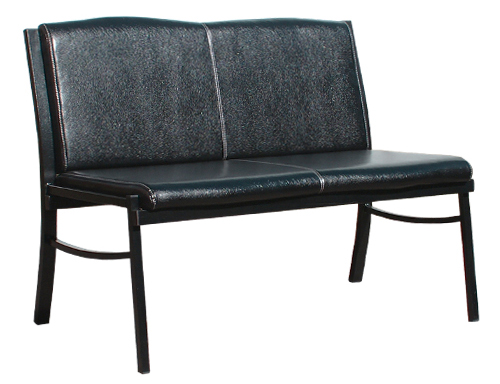 Каркас выполнен из тонкостенной профильной трубы. Окрашен защитно-декоративным полимерно-порошковым покрытием. Каркас имеет две цельносварные боковины, изготовленные из профиля 40х25х1.5 мм (задняя ножка-спинка), 25х25х1.5 мм (передняя ножка) соединенные двумя перемычками из профиля 25х25х1.5 мм и 20х20х1.5 мм. Боковины соединены между собой двумя перемычками из профиля 40х25х1.5 мм с помощью винтов М6х15 мм. Трубы каркаса заглушены защитно-декоративными пробками ПВХ. Полумягкие сиденье и спинка дивана выполнены из ДСП толщиной 16 мм, обтянуты поролоном толщиной 40 мм и обшиты мебельным кожзаменителем. Обратные стороны полумягких частей обиты нетканым материалом (спанбондом). Сиденье и спинка скрепляются с каркасом саморезами 4х16 мм. Допустимая нагрузка 120 кг.