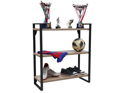 Полки стеллажа выполнены из ЛДСП Вяз натуральный, толщиной 25 мм, с лазерной ABS кромкой толщиной 2 мм с полимерным функциональным слоем (Германия), которая обеспечивает эффект нулевого шва и улучшает влагостойкость и термостойкость элементов фасада.