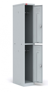 Шкаф разборный металлический односекционный с двумя отделениями предназначен для хранения сменной одежды. Каждое отделение снабжено дверью с индивидуальным врезным замком. В каждом отделении: перекладина для вешалки.