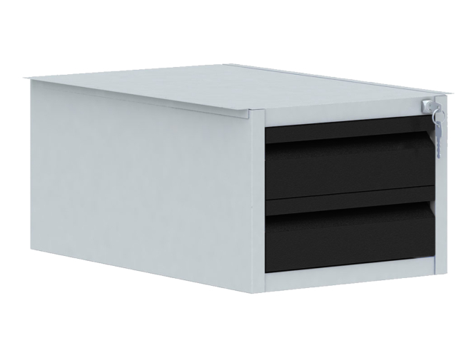 Подвесная тумба Т-ВПЭ предназначена для крепления к верстаку ВП-Э. Может использоваться как с верстаком, так и как отдельный элемент металлического мебели. Состоит из двух выдвижных ящиков, запирающихся на общий замок