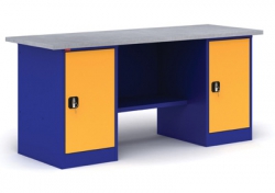 Верстак металлический двухтумбовый с тумбой и драйвером. Состоит из отдельных модулей: