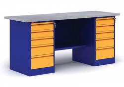 Верстак металлический двухтумбовый с тумбой и драйвером. Состоит из отдельных модулей: