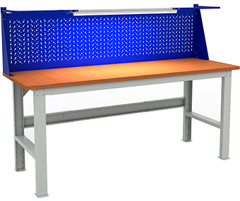 дополнительно верстак можно укомплектовать перфорированным экраном соответствующего размера, светодиодным освещением и аксессуарами для инструментов.