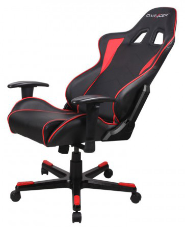 DXracer OH/FE08/NR – кресло спортивного дизайна с прочным стальным каркасом и высокой спинкой. Материалом обивки является эко-кожа черного цвета с красными вставками. Изменяемый до 170 градусов угол наклона спинки и регулируемые по высоте подлокотники позволяют с комфортом расположиться за компьютером.