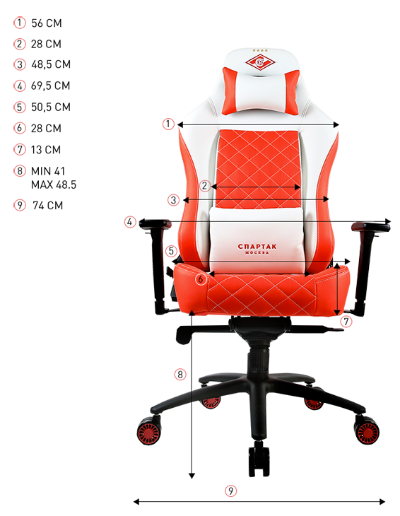 Кресла ФК «СПАРТАК МОСКВА» украшены официальной эмблемой клуба и выполнены в фирменных спартаковских цветах.
