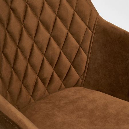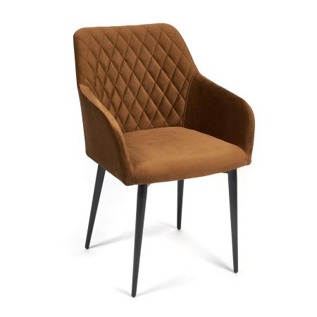Кресло BREMO из коллекции Modern – это удачное сочетание простоты и элегантности. Простая форма, благородный цвет обивки, стеганая спинка и визуально легкие металлические ножки выгодно выделают кресло среди привычной мебели. Удобное сиденье, эргономичная спинка и мягкие подлокотники обеспечивают комфортную посадку для продолжительного отдыха. Надежный каркас кресла изготовлен из многослойной фанеры толщиной 10 мм. Мягкая, бархатистая и приятная на ощупь поверхность сиденья и спинки подарит максимальный комфорт и уют. Тканевая обивка коричневого цвета из велюра не мнётся, не меняет форму, пропускает воздух, экологична и гипоаллергенна. Металлические ножки с порошковым покрытием и пластиковыми подпятниками делают кресло прочным и устойчивым.