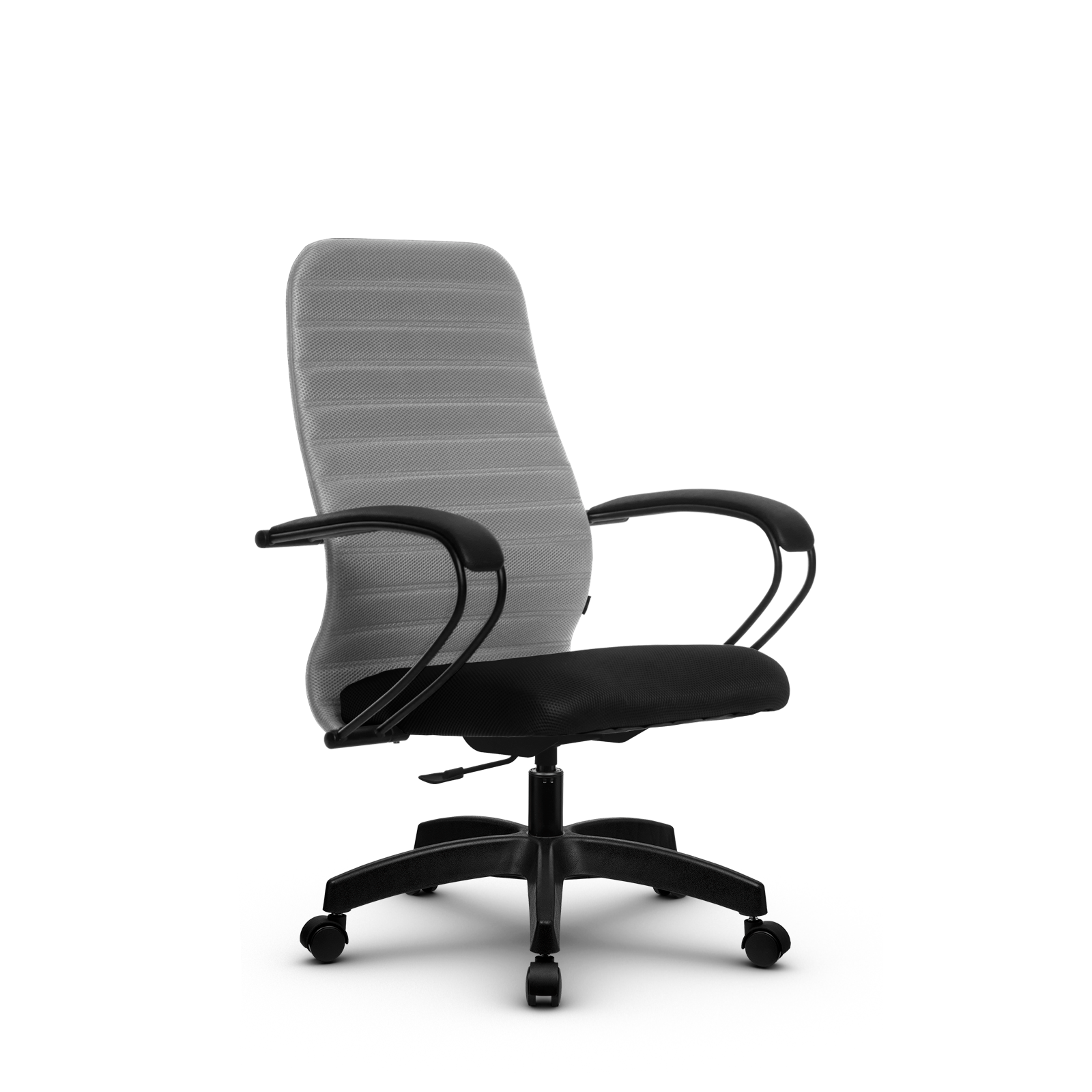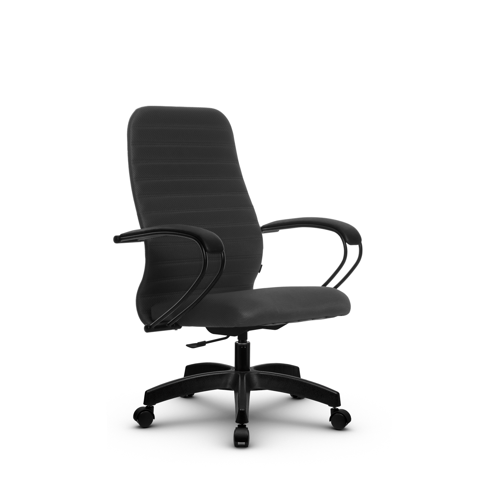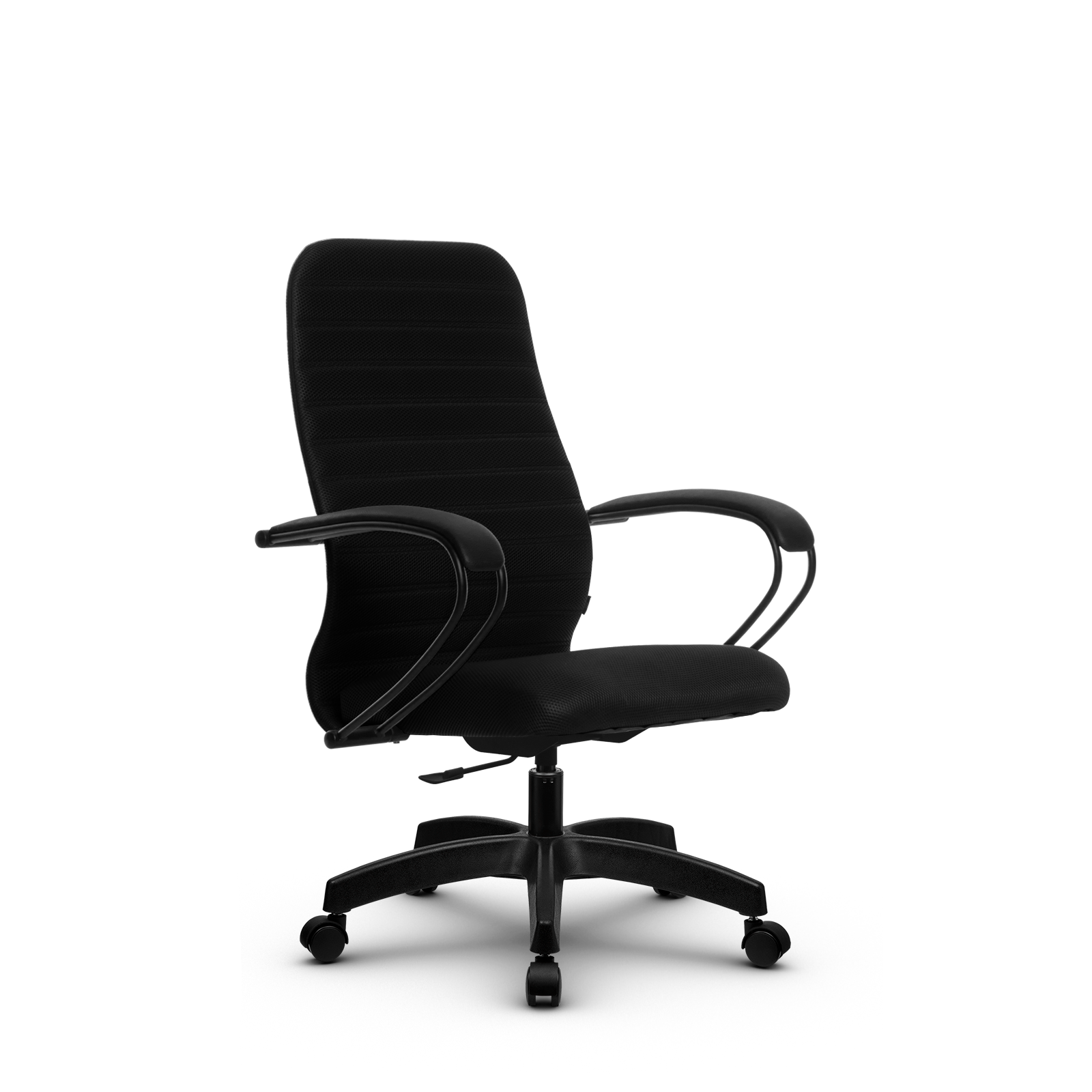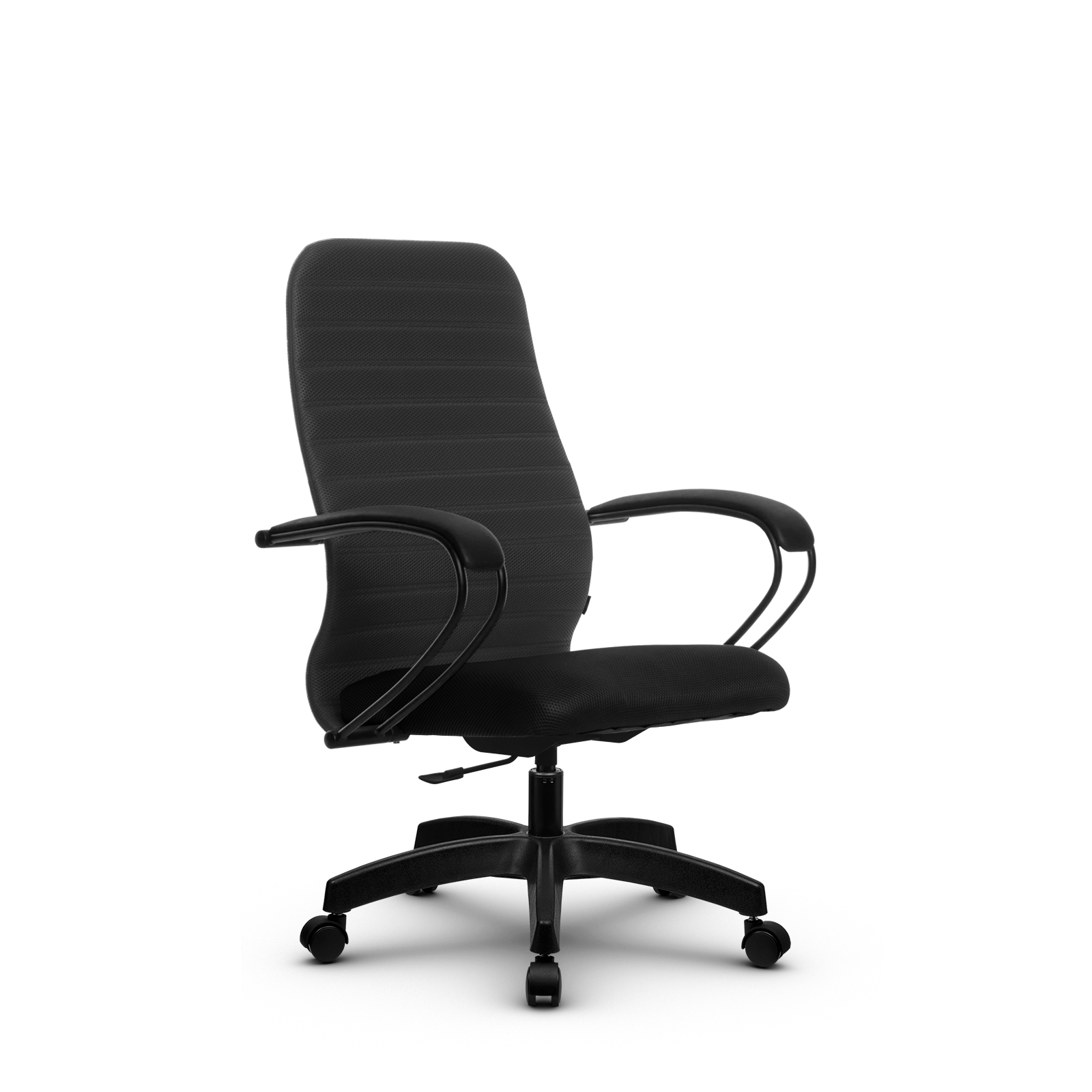Подлокотники: стальные классические, с полимерным покрытием черного цвета, с мягкими накладками