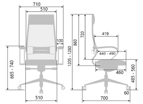 Регулируемая 3D поясничная поддержка (РПП): каркас стальной пластинчатый с полимерным покрытием черного цвета и хромированным молдингом. Подвижная часть РПП стальная хромированная, ремни из велюра Goya. Регулировка по глубине, высоте и жесткости