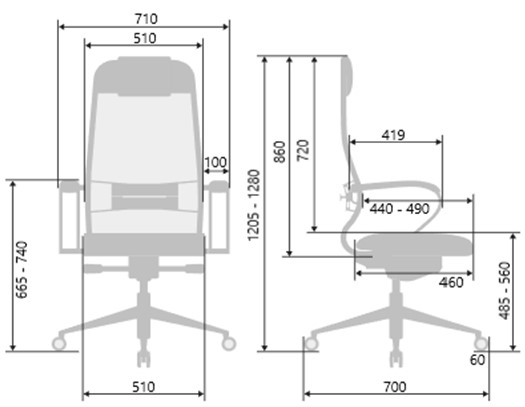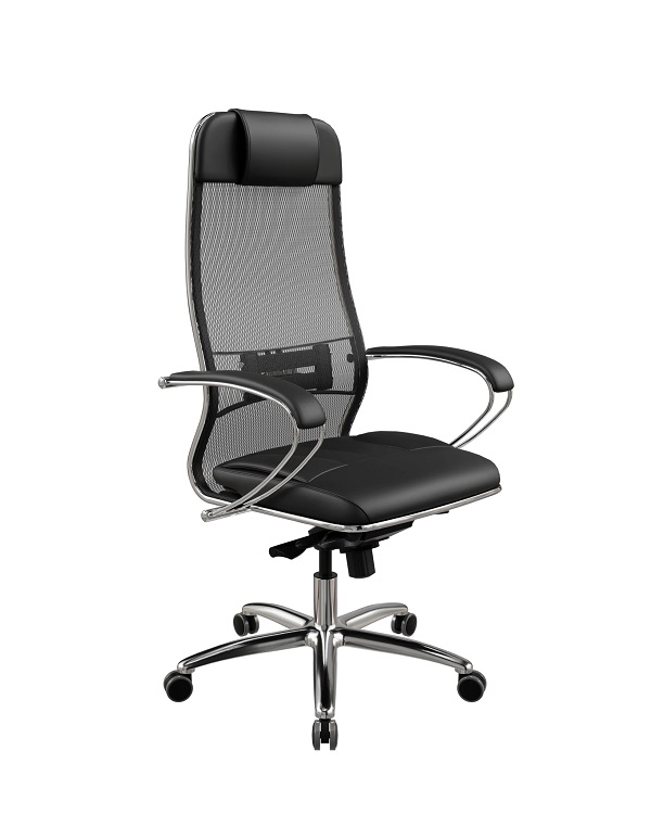 Регулируемая 3D поясничная поддержка (РПП): каркас стальной пластинчатый с полимерным покрытием черного цвета и хромированным молдингом. Подвижная часть РПП стальная хромированная, ремни из искусственной кожи Extra. Регулировка по глубине, высоте и жесткости.