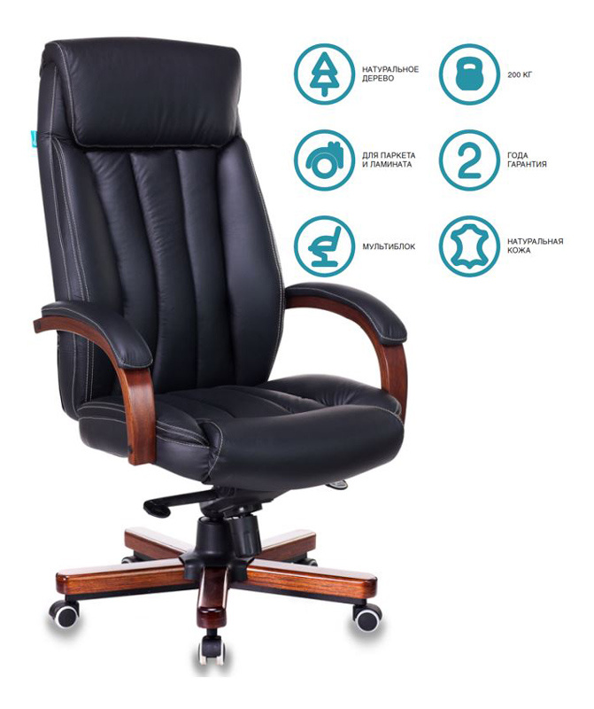 Кресло руководителя Бюрократ T-9922WALNUT черный кожа крестов. металл/дерево