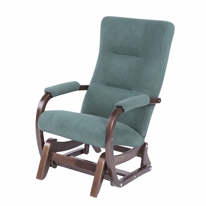 Кресло-глайдер «Мэтисон-2» с тканевой обивкой цвета Малахит и каркасом цвета Орех.