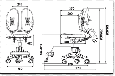 - спинка стула, состоящая из двух частей - высокофункциональна - позволяет плотно удерживать спину и осуществлять повороты туловища влево-вправо, что необходимо для динамичного сидения и выполнения физкультминутки, не вставая со стула;